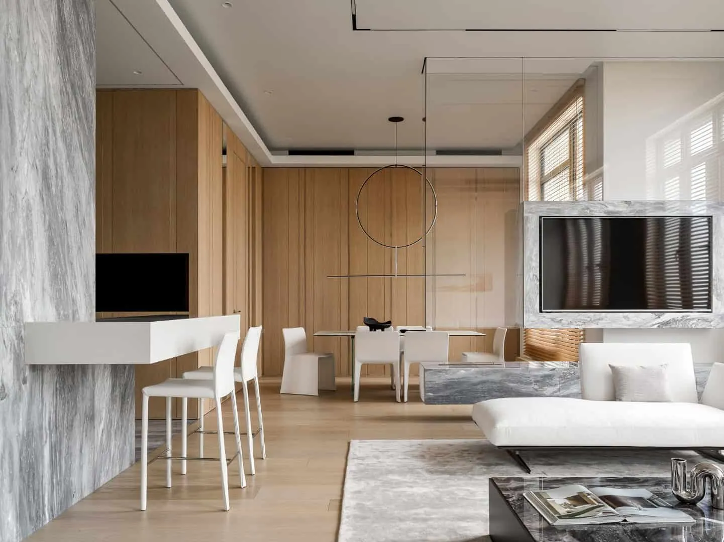 这种质量与轻盈之间的对话,创造出一个既坚实又飘逸的住宅。