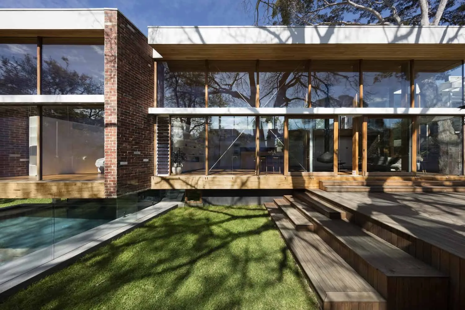 房屋其他部分不断变化的景观引发不同的情感和与环境的新互动。从开放的生活空间和露台的大玻璃窗望向森林中央,柔和的地形坡度提供了不同于工作室的观察点,让人感觉置身树丛之中而非高处。主卧室设有宽敞独立式泳池——一个放松和恢复精力的场所,适合跑完步后使用。