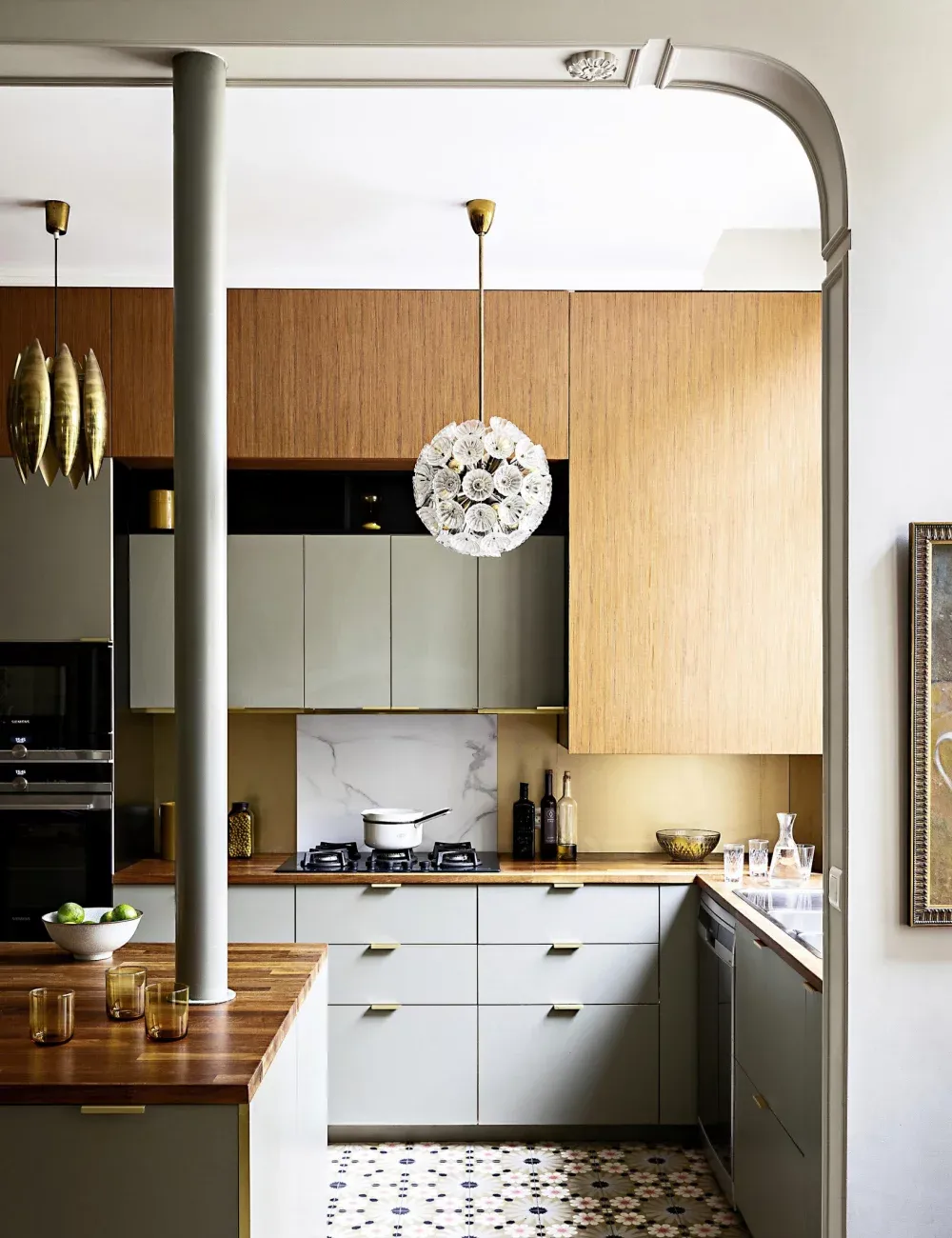 我们喜欢这栋房子的木工工艺、地板、大窗户和双开门,它们很好地连接了空间,例如客厅与厨房。