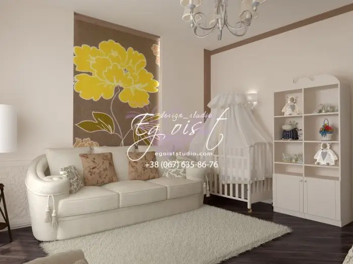 这个温馨的空间专为年幼的孩子设计,目前只占据一小部分空间,并且很可能与父母共享。但很快它将完全属于他。目前,这是一个专为孩子睡觉和玩耍而设的舒适房间。由于白色与温暖的黄色和棕色相结合,房间呈现出轻盈和温馨的感觉。