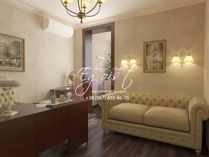 并非每个公寓都设有书房用于工作,但这个空间绝对是必不可少的。房间虽小却温馨,为工作和商务会议创造了完美的氛围。房间采用严谨但温暖的色调,让人感到舒适与宁静。