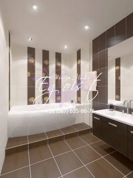 浴室具有现代外观,配有放松的浴缸。白色的天花板为其增添了空气感,这是整套公寓一贯的设计风格;墙面装饰的花朵不仅是装饰,也柔和了这个空间的严肃与平凡。大镜子和现代卫浴设备是房间的重要元素。