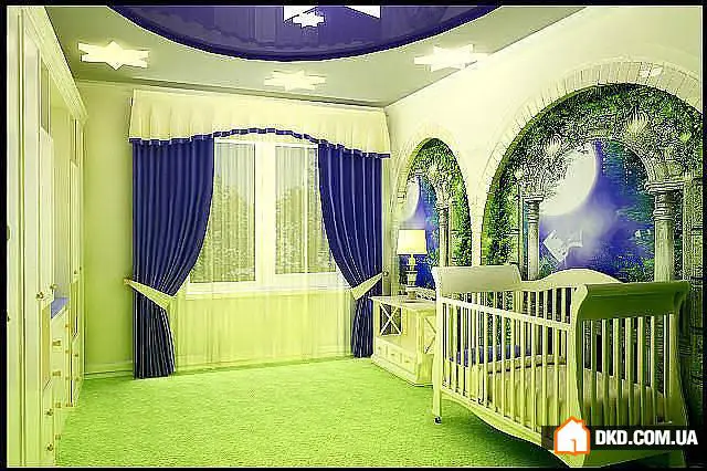 靠近婴儿床的衣柜储存着孩子的玩具和可能的小衣橱。中央区域一个造型独特的白色沙发是和孩子游戏、休息的理想场所。正如整套公寓一样,地板铺设了豪华的木质复合地板和洁白的华丽地毯。