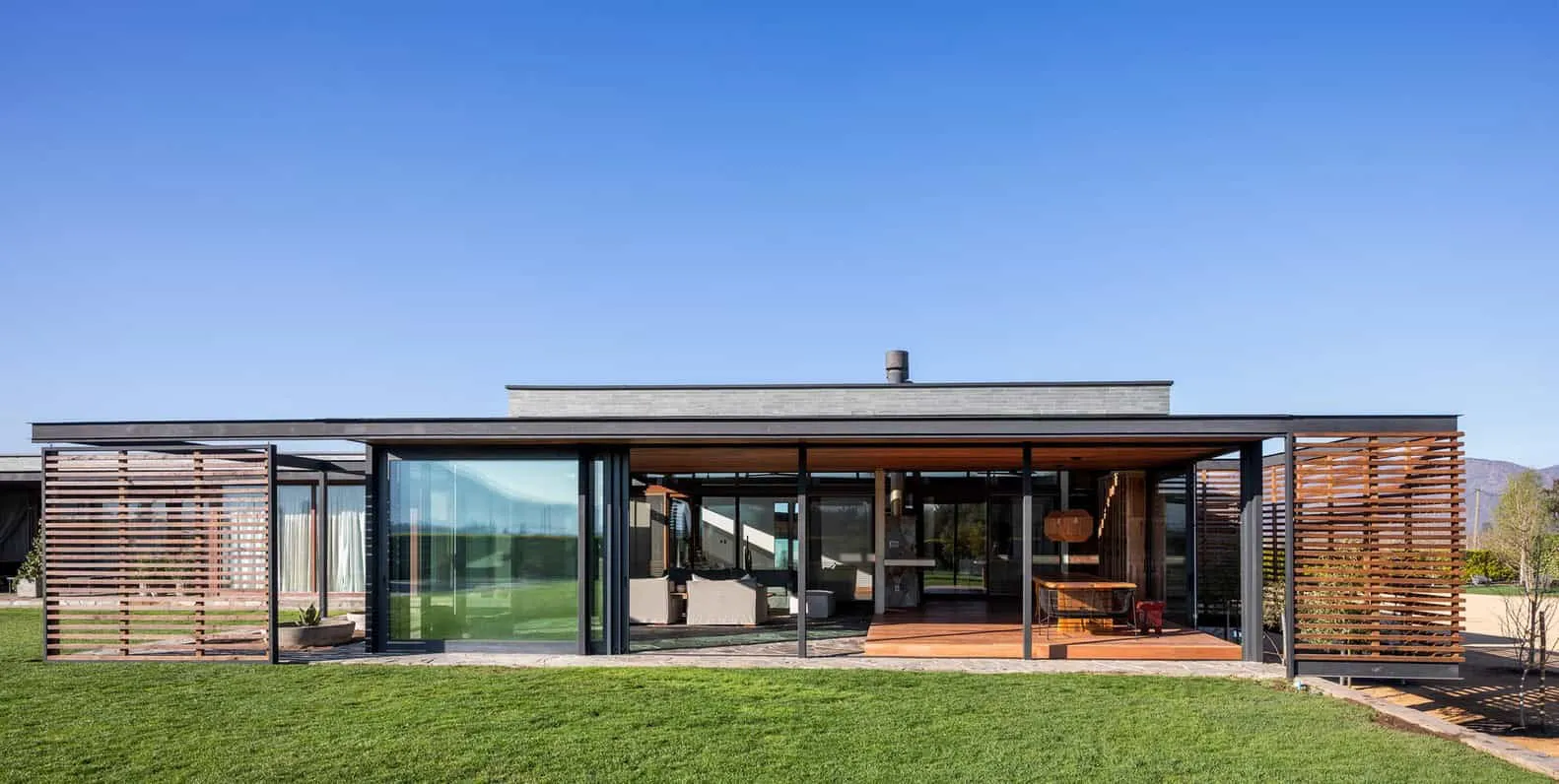镀锌金属网环绕着私人区域的上层,遮蔽阴影并限制视野,该区域包括三间卧室和两间浴室。这是一个宁静的保护区,悬浮于下方,为下面的花园提供阴凉区域。
