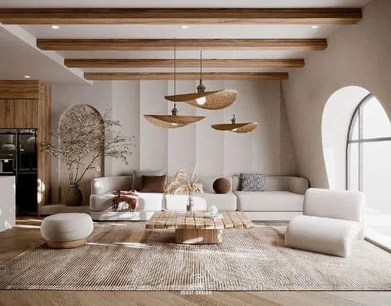 舒适家具:选择舒适的座椅,如蓬松的沙发、扶手椅和凳子,邀请您放松交谈。添加与整体色调和图案相协调的柔软毯子和靠垫,增强休闲区域的舒适感与美感。