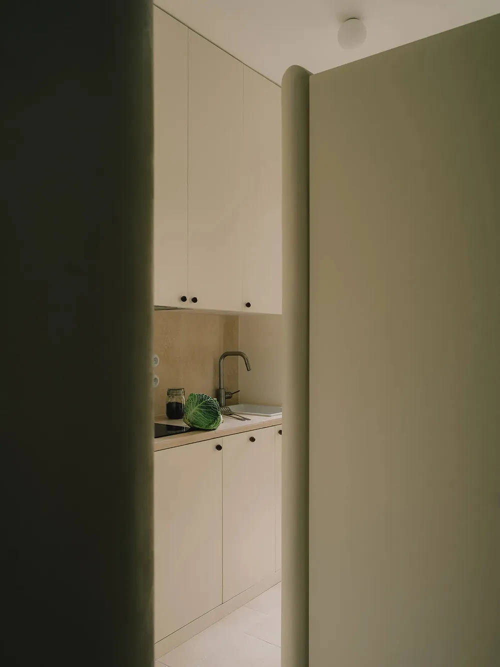 时尚精致的小户型公寓 interiors,卧室位于玻璃后方(44平米)
