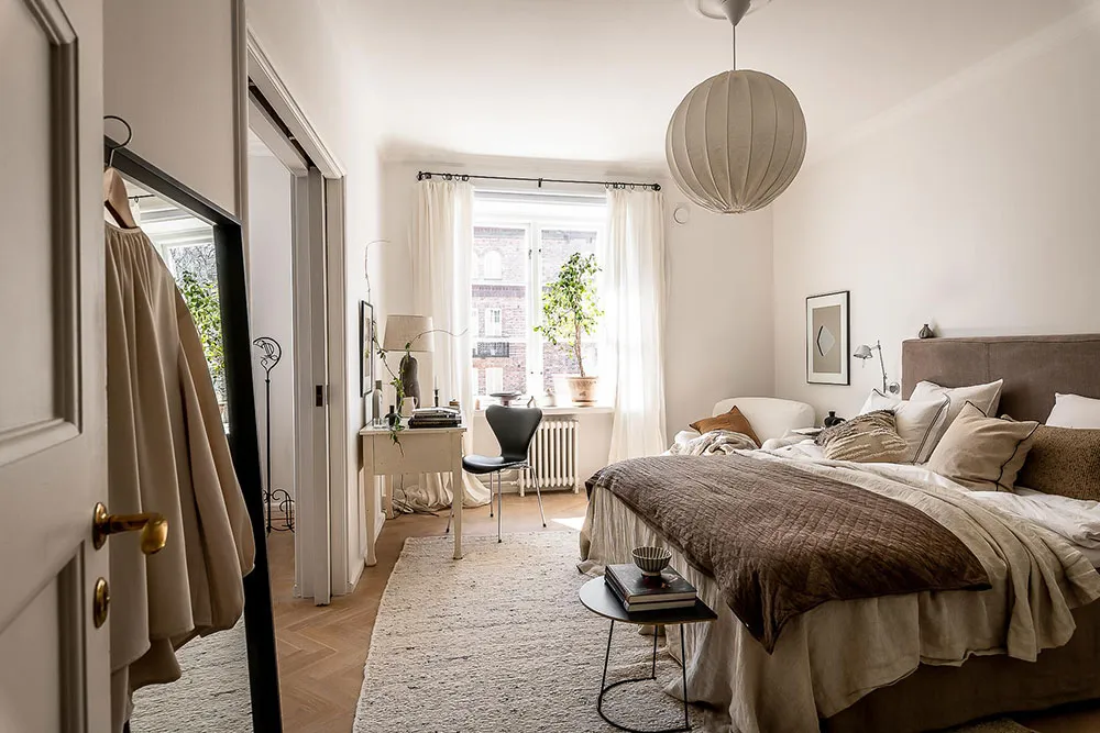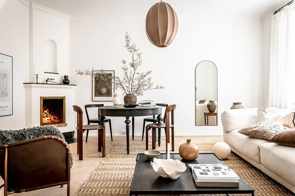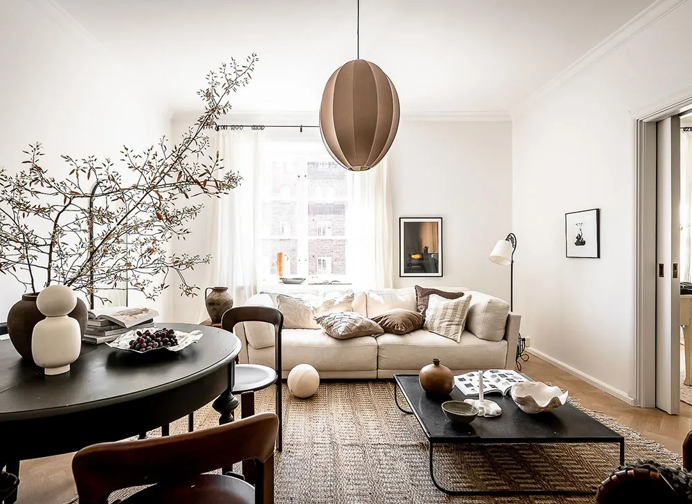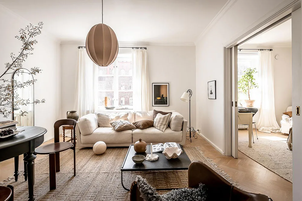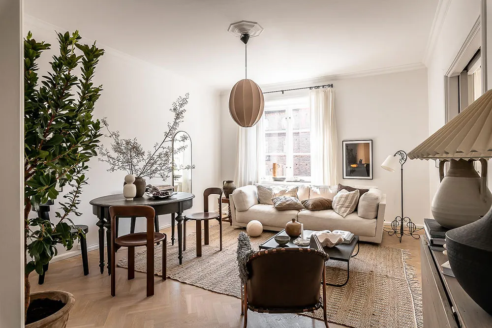复古家具和细节为哥德堡这间明亮公寓的设计带来了愉悦而温暖的氛围。