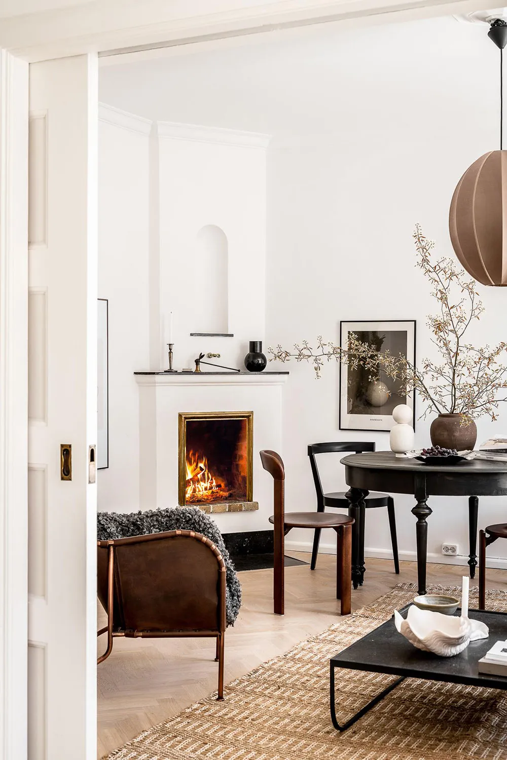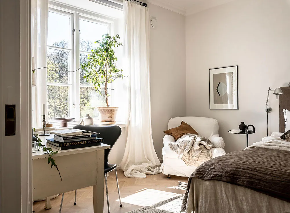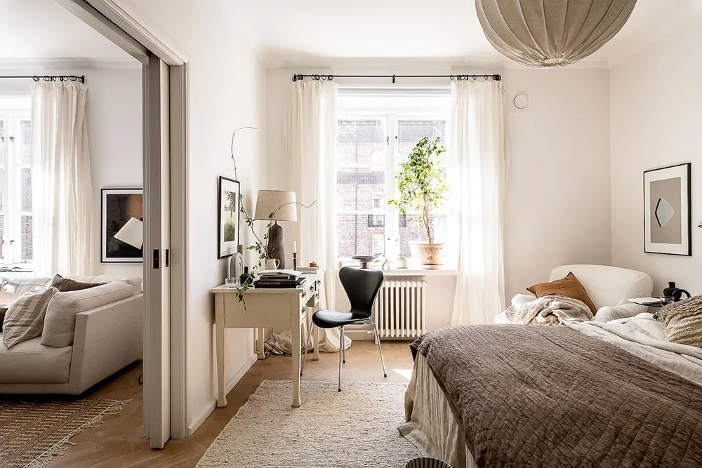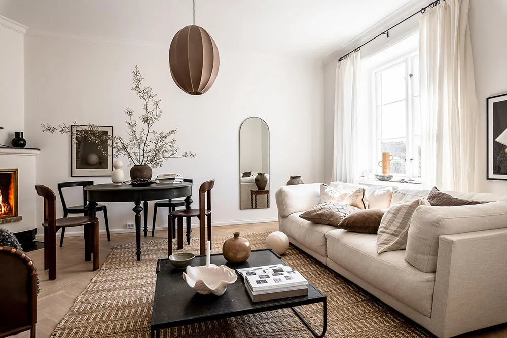 复古家具和细节为哥德堡这间明亮公寓的设计带来了愉悦而温暖的氛围。