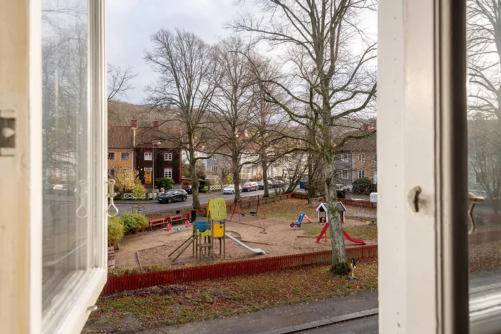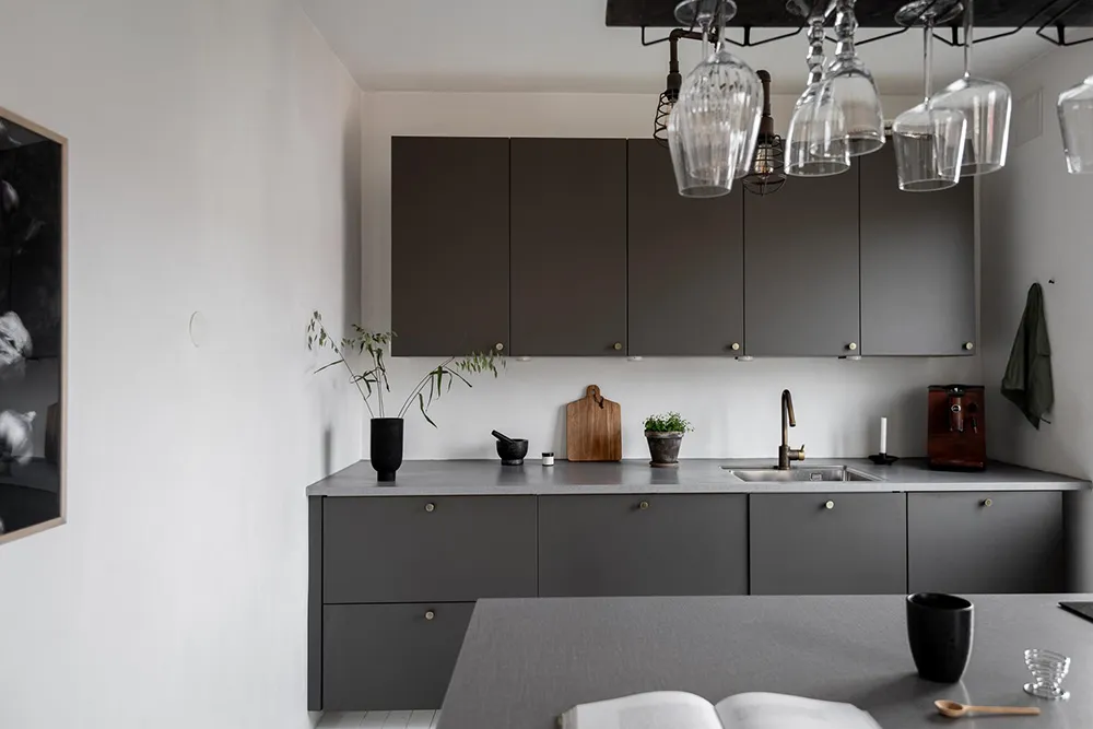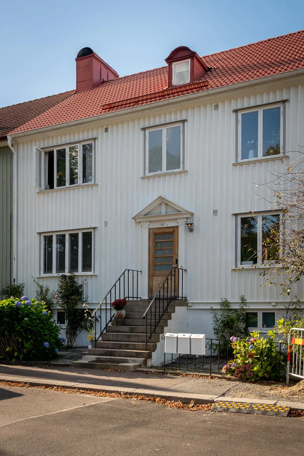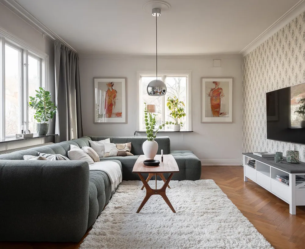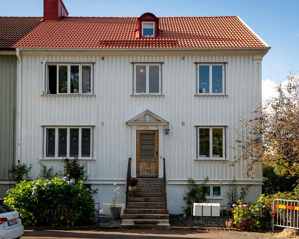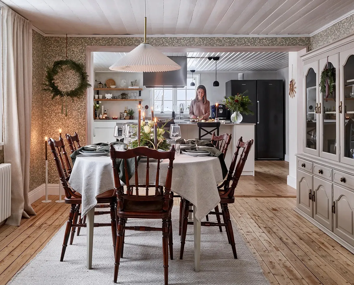这座位于哥德堡历史悠久木制豪宅中的公寓内部完美传达了地点的情绪与情境——这是一个安静的郊区,拥有丰富的绿色植被和沉稳的小镇氛围。