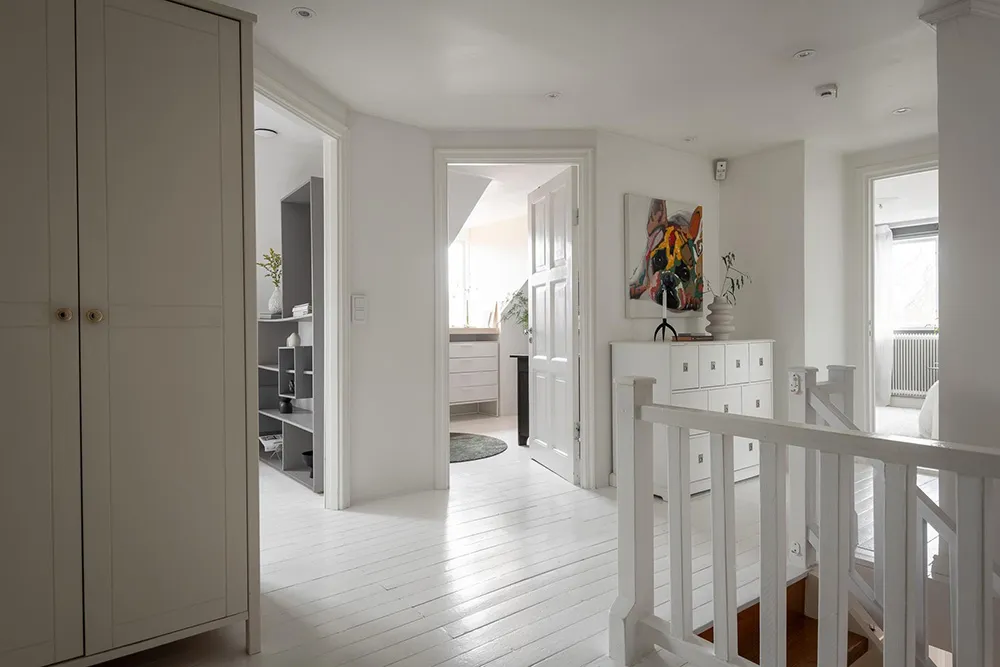 中性色调与宁静氛围:哥德堡郊区两层公寓