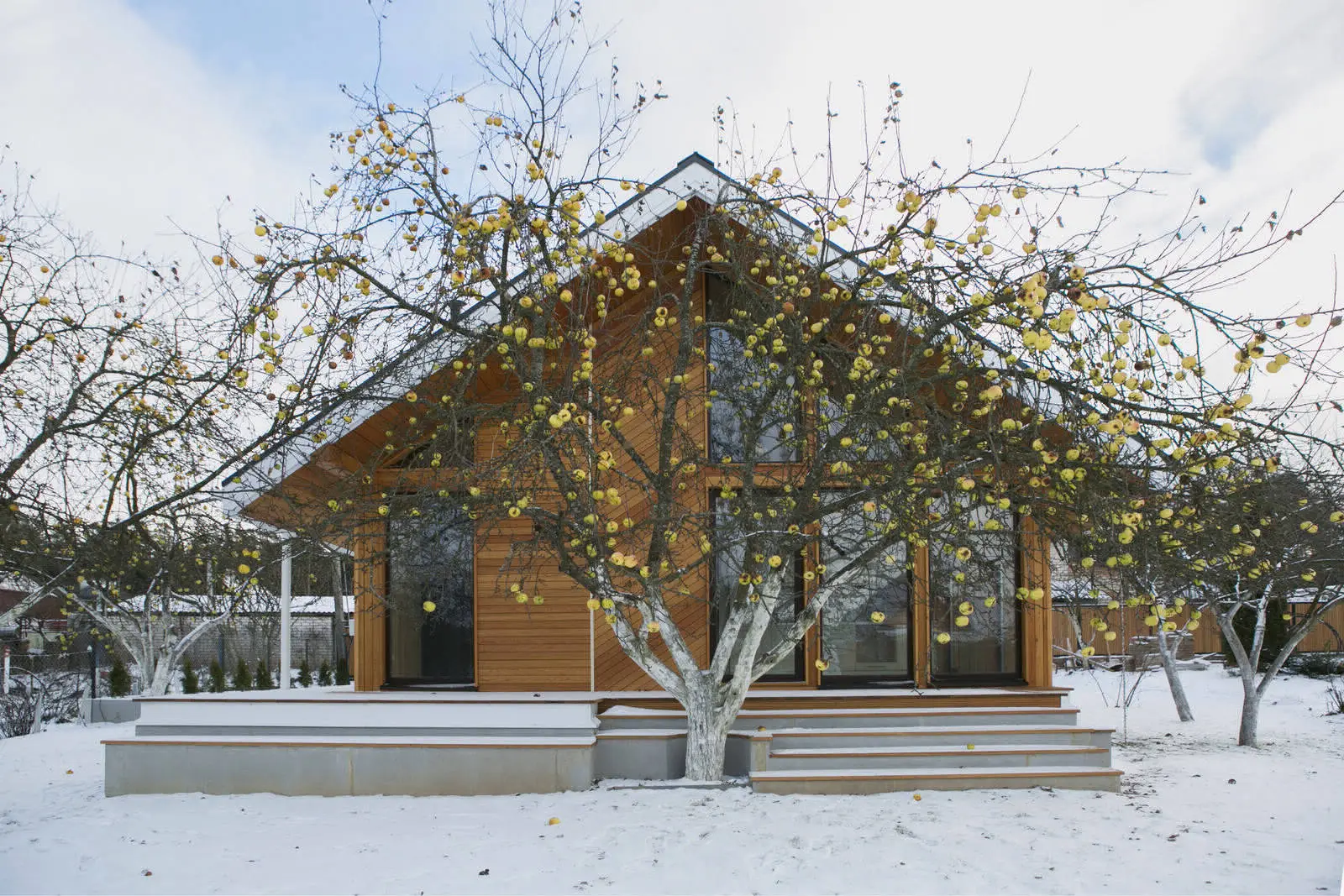 西侧和南侧坡屋顶的设计使得外墙较低,与老房子和远处的树木保持比例协调。东侧和北侧屋顶则陡峭上升,呼应附近的树木,宛如教堂尖塔,暗示着这片土地的历史。