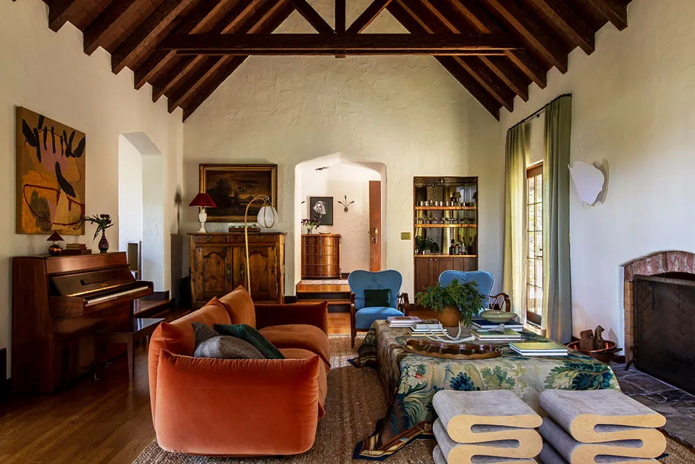 复古家具与鲜艳印花:硅谷都铎风格住宅