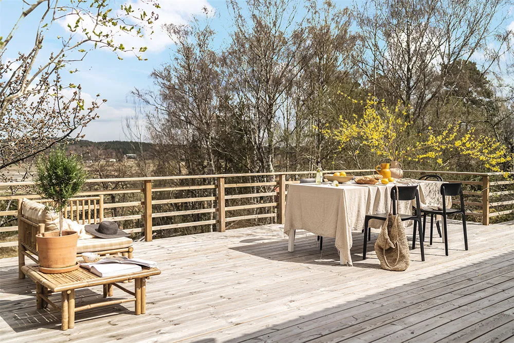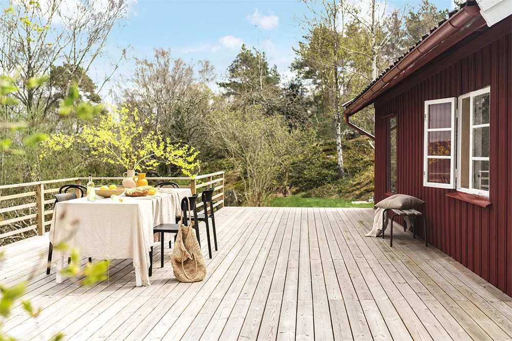 这座迷人的瑞典小屋围绕房屋设有露台,其面积比室内空间还要大,室内空间仅为30平方米。
