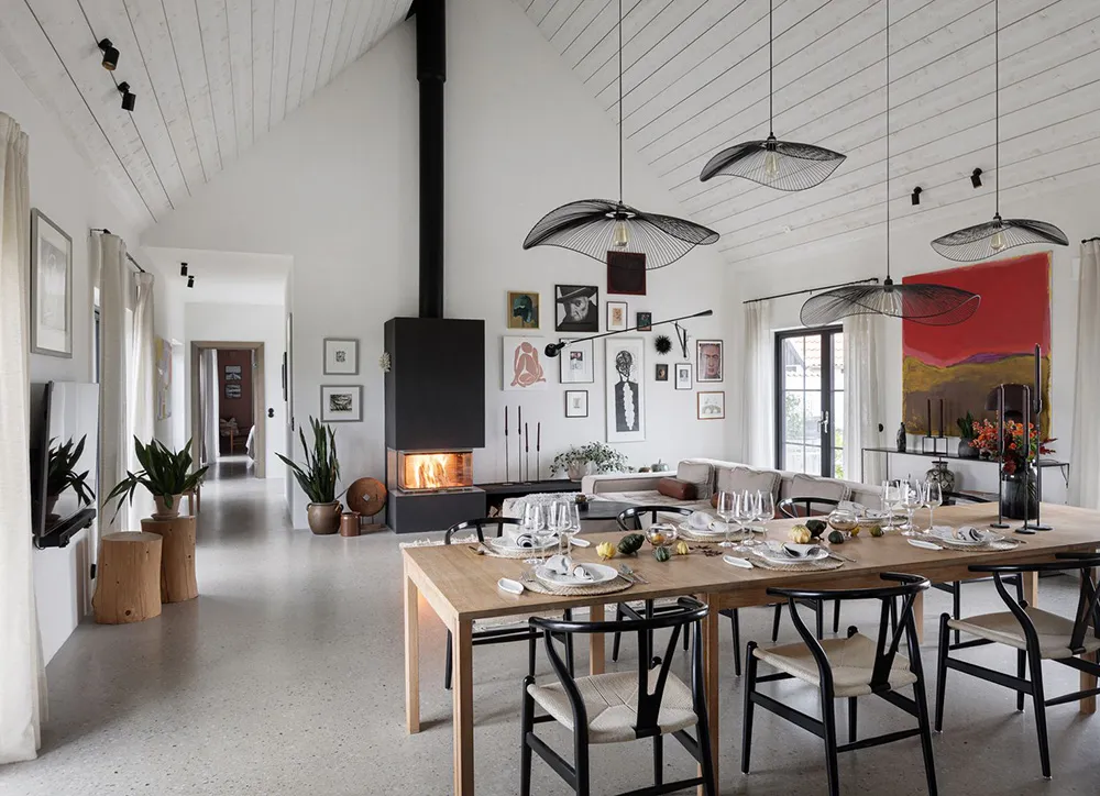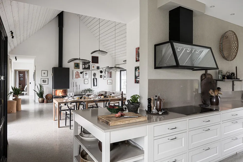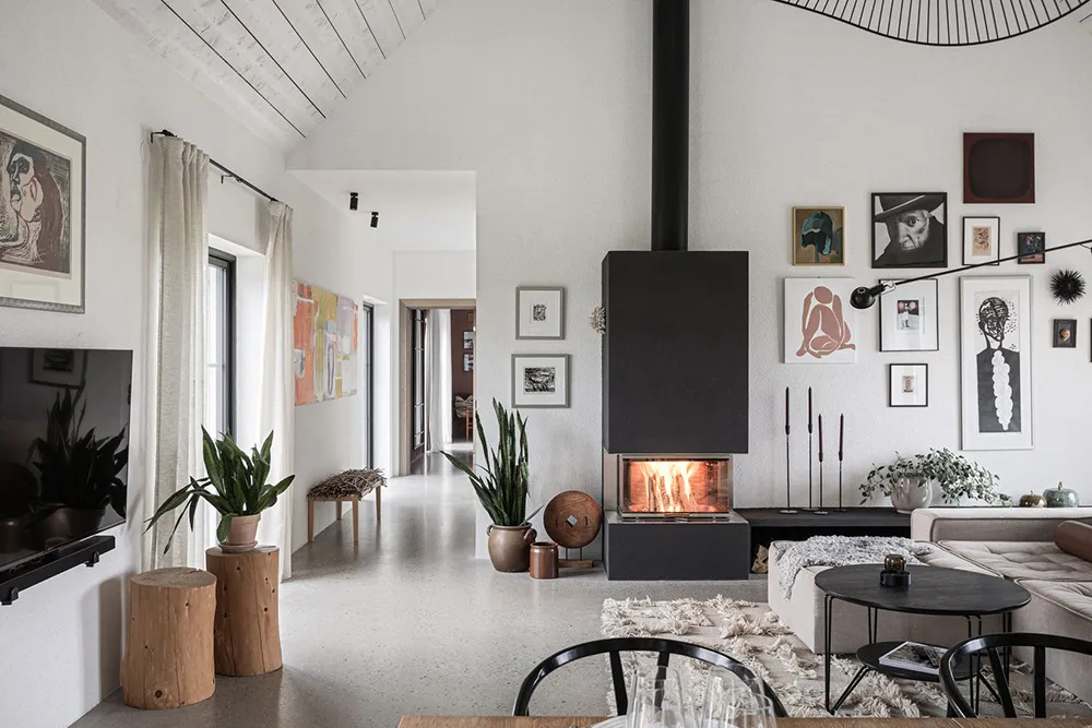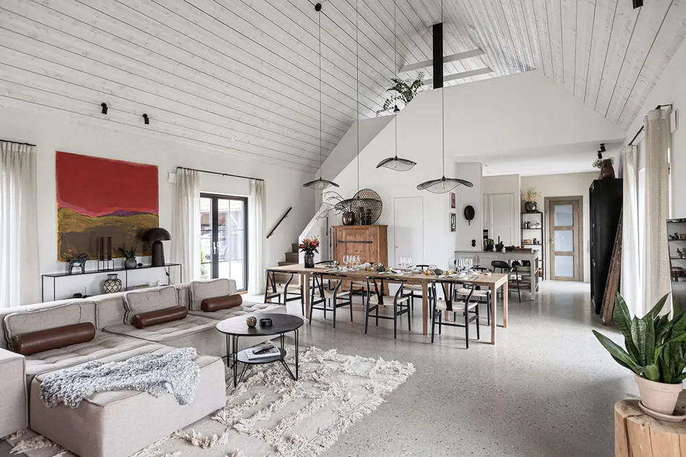 瑞典乡村农舍的宽敞内部空间,采用谷仓风格