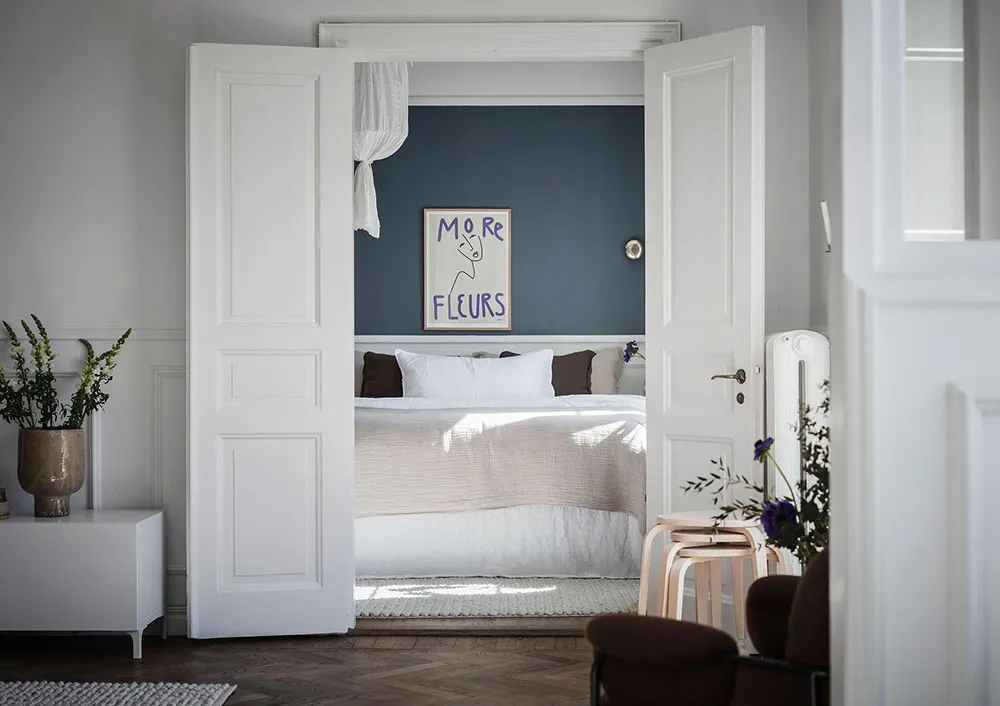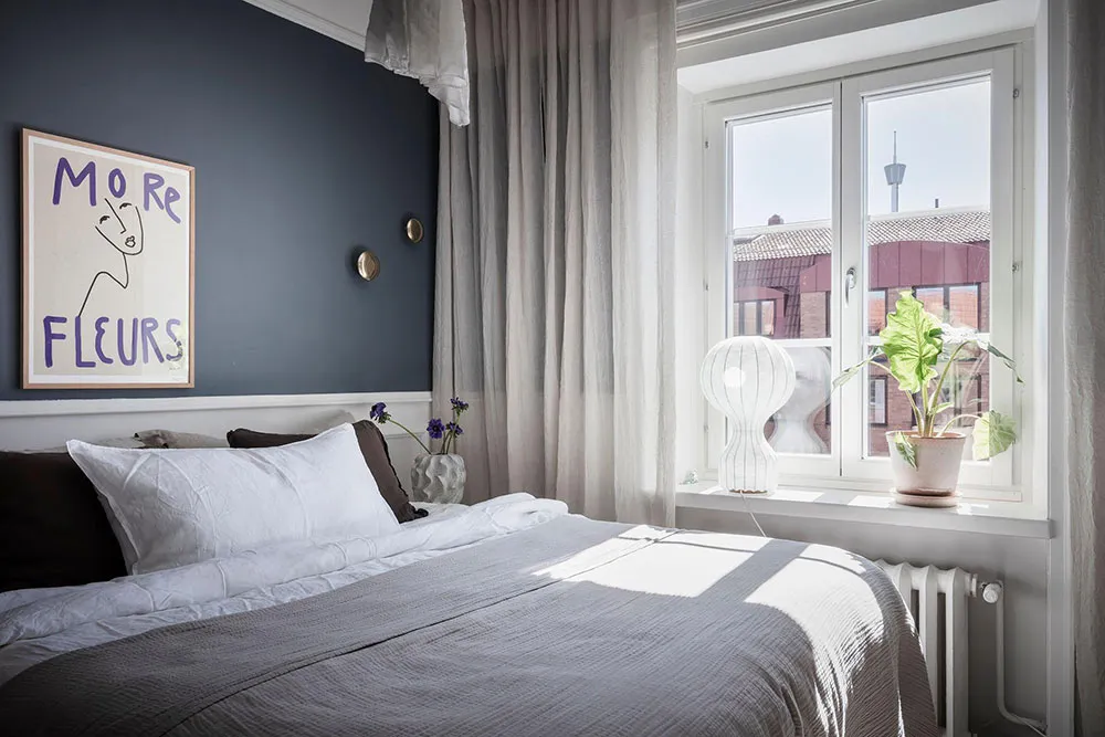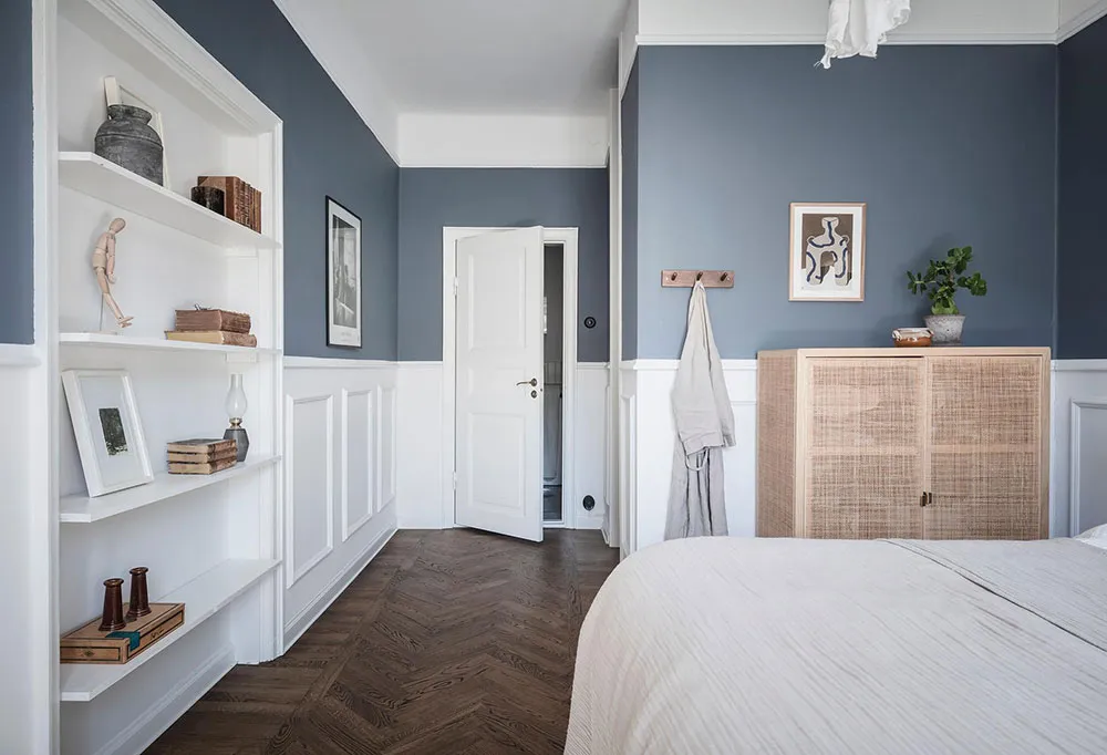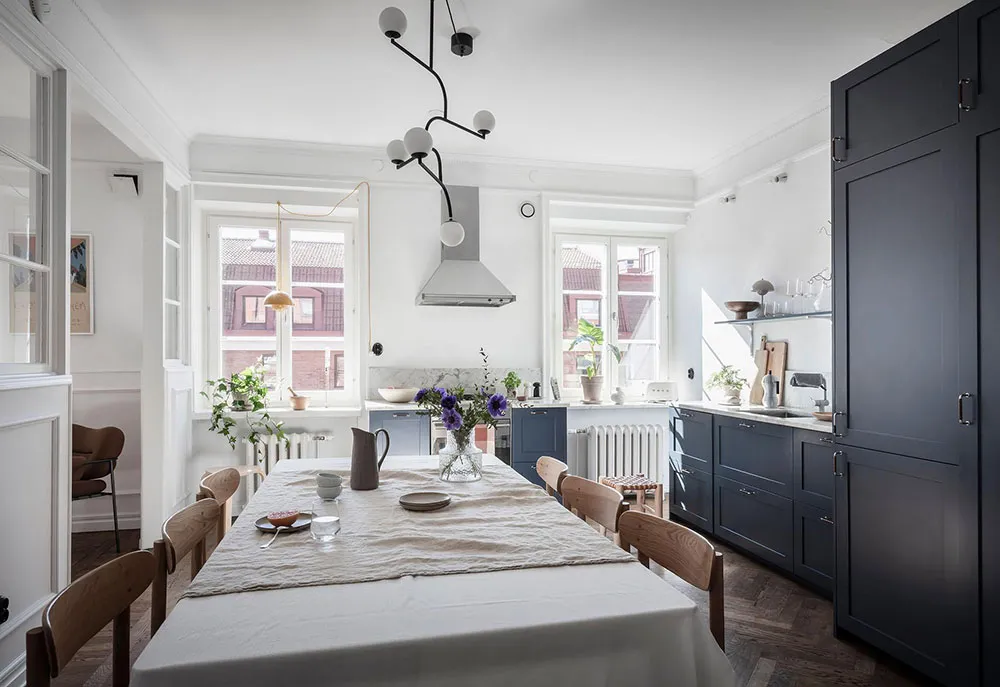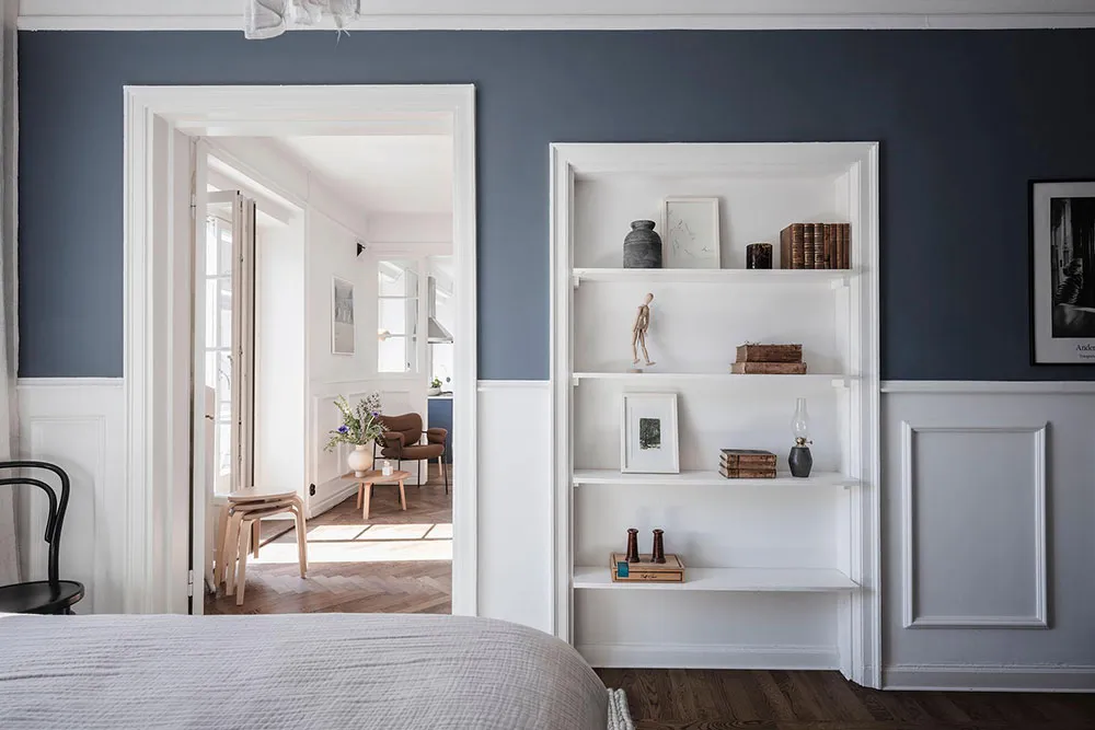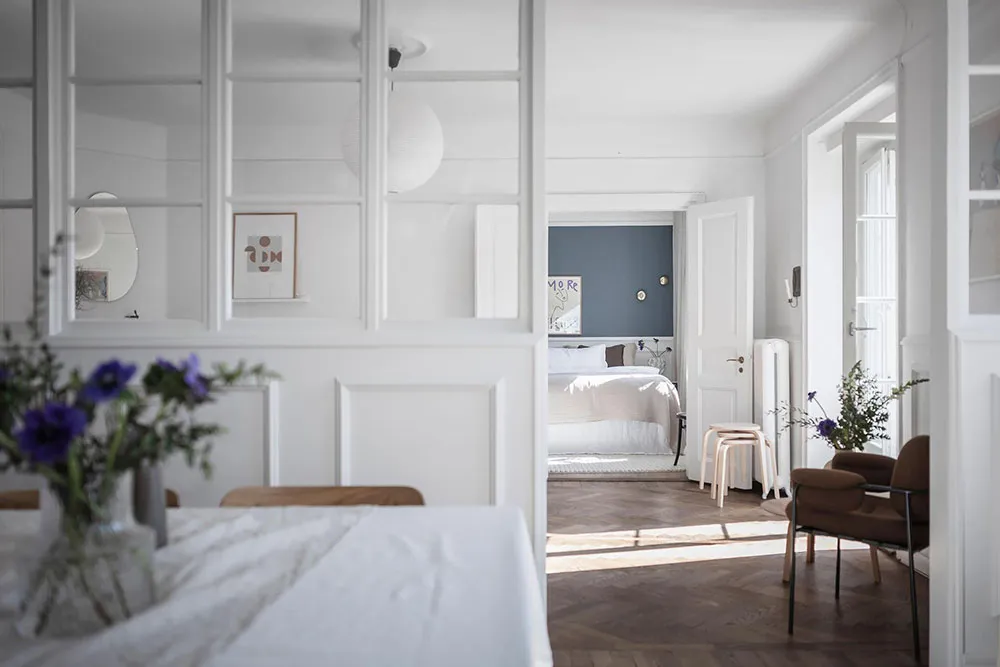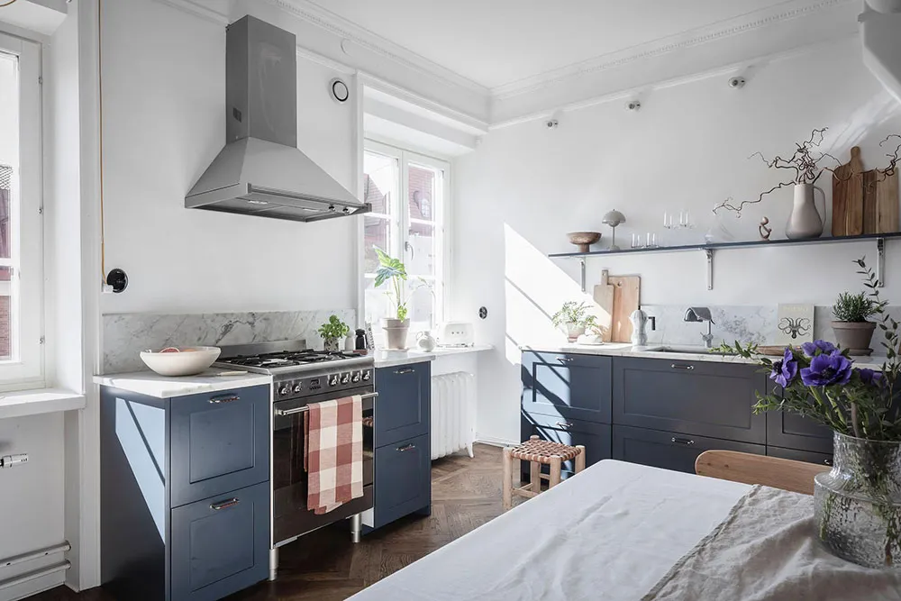 这套瑞典公寓的色彩搭配让人联想到大海与海洋的新鲜感——室内装饰采用明亮的白蓝色调,常用于海滨家居设计。