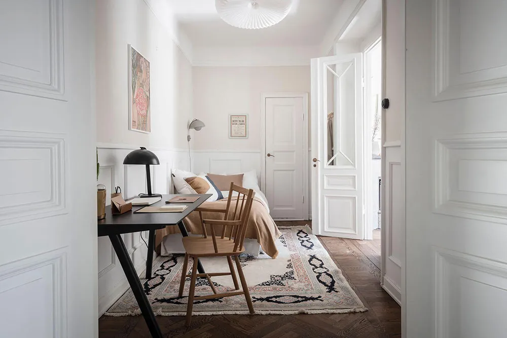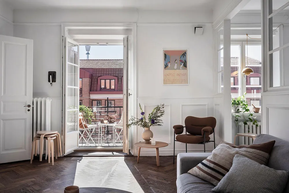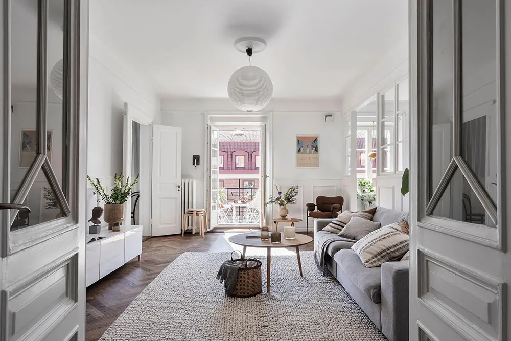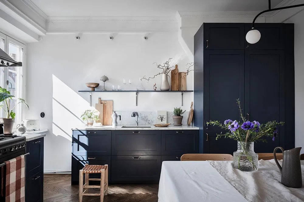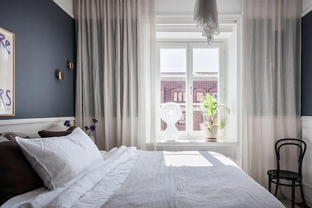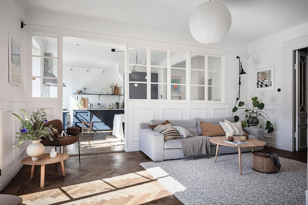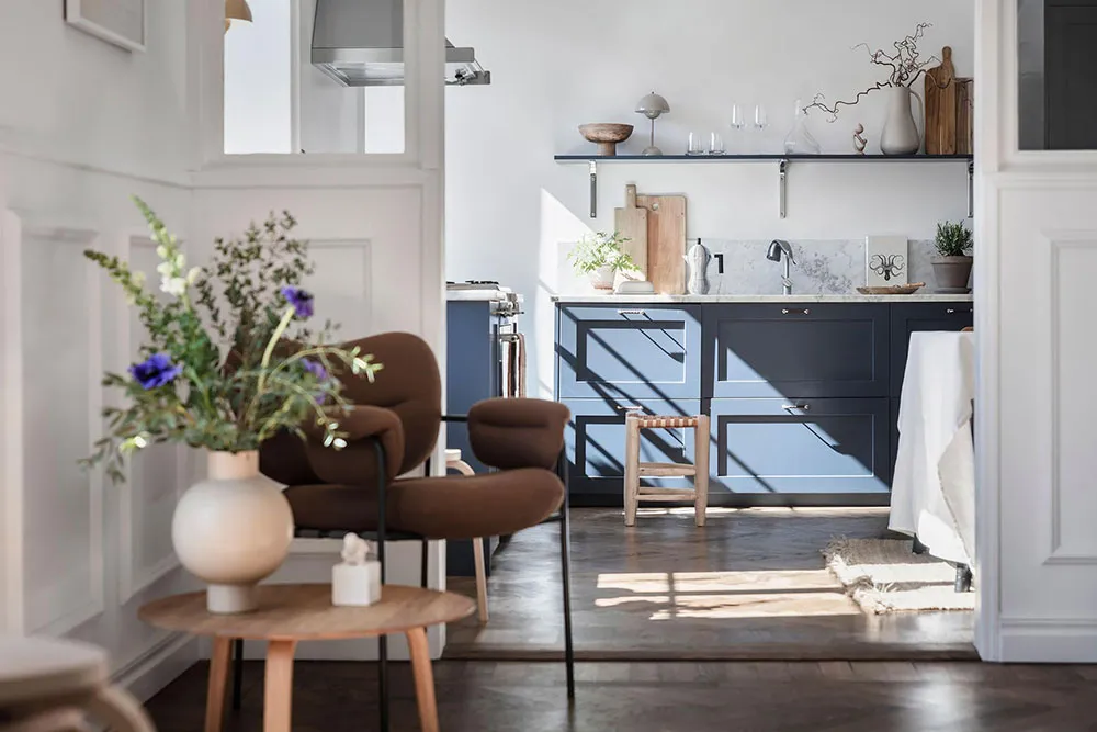 这套瑞典公寓的色彩搭配让人联想到大海与海洋的新鲜感——室内装饰采用明亮的白蓝色调,常用于海滨家居设计。