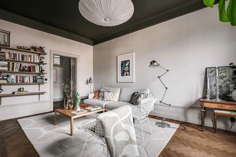 北欧风格公寓黑色天花板设计