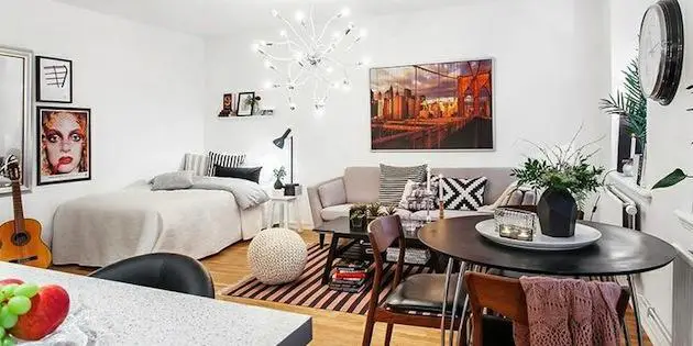 Leider ermöglicht die Fläche moderner Stadtwohnungen oft nicht, separate Räume für Küche, Esszimmer, Wohnzimmer, Schlafzimmer, Kinderzimmer oder Büro zu haben. Daher bleibt die Kombination mehrerer funktioneller Zonen in einem Raum die Hauptaufgabe bei der Gestaltung einer kleinen Wohnung.