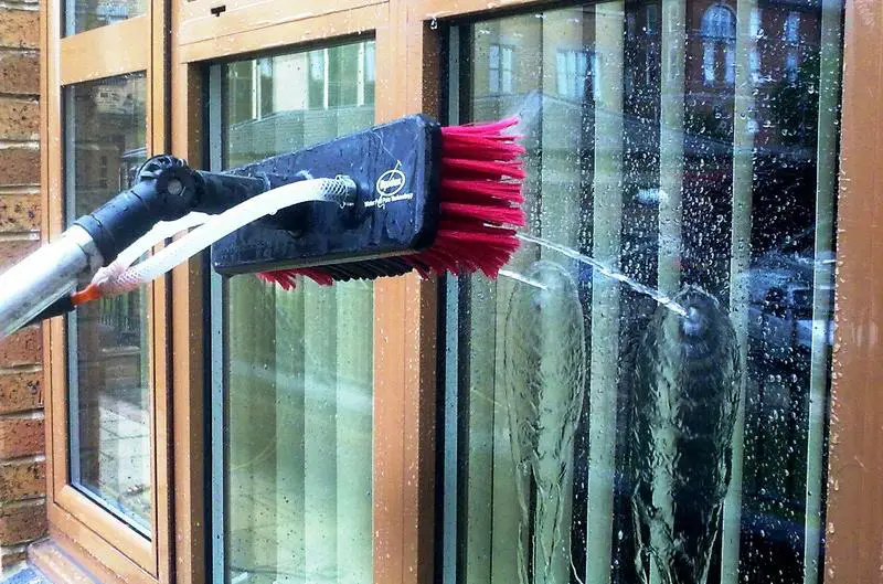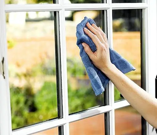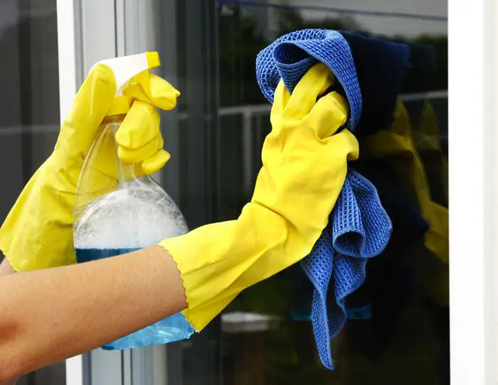 Zum Reinigen von Verglasungen eignen sich Mittel für Autofenster, wässrige Ammoniaklösung oder Spezialreiniger für Glas.