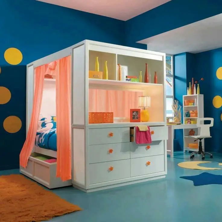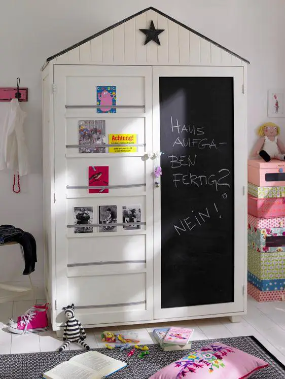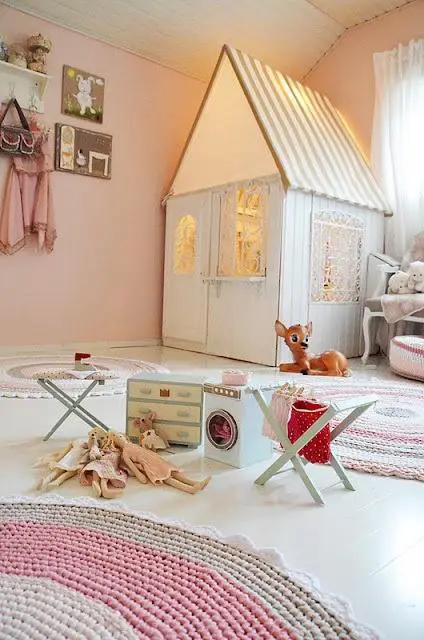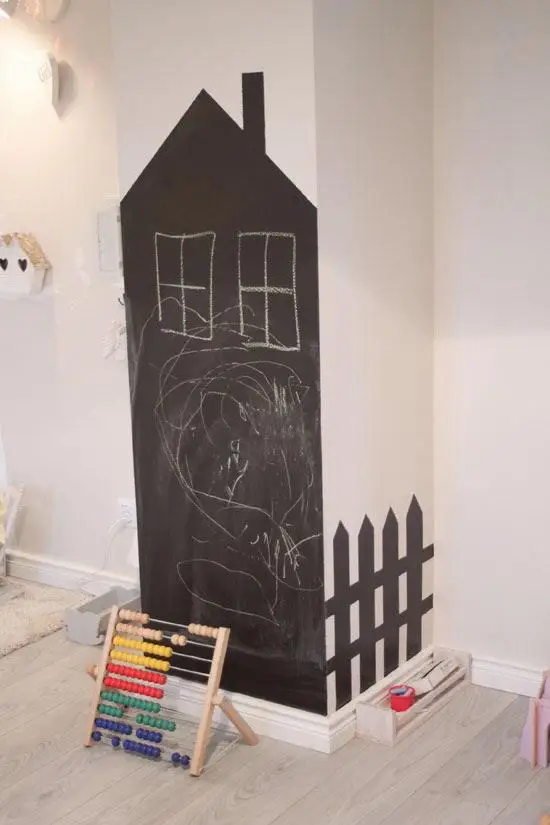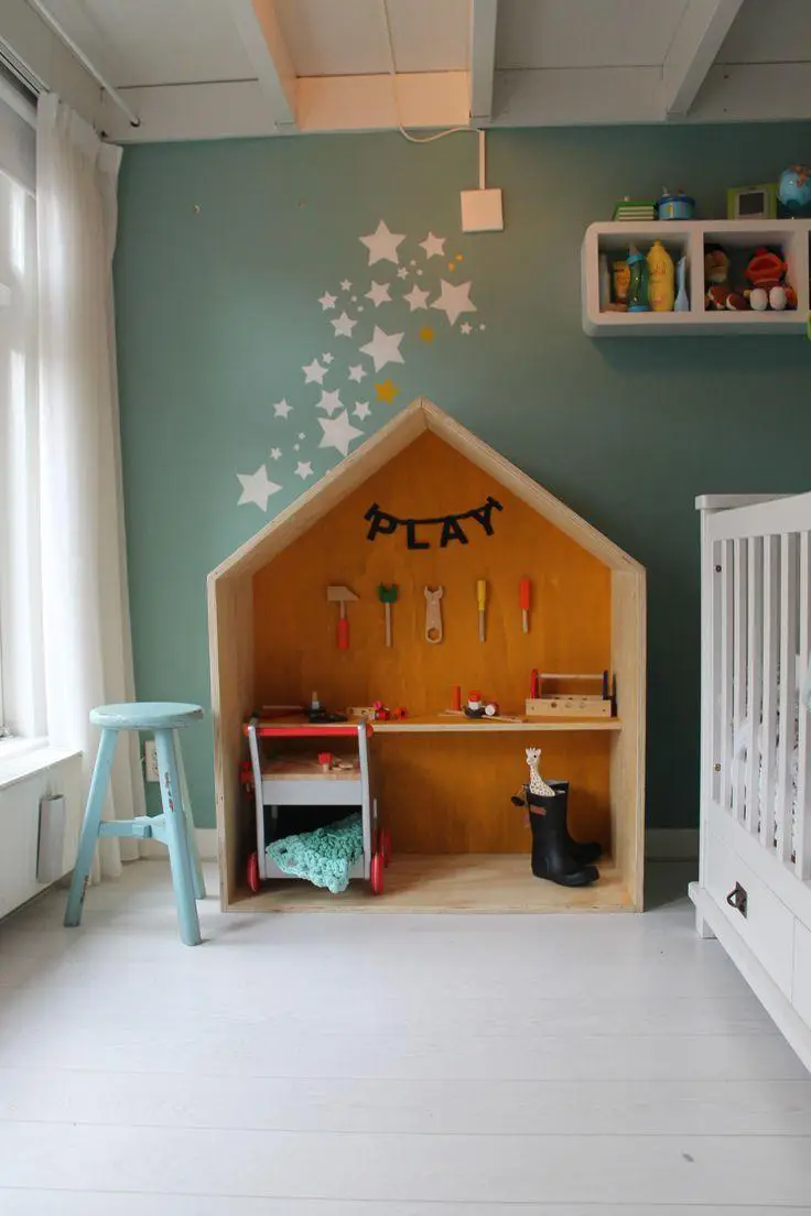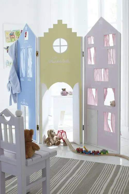 Wenn im Kinderzimmer nicht viel Platz ist, kannst du ein kleines Spielhaus bauen. Oder zum Beispiel ein tragbares Spielhaus in Form einer Wand. Oder eine Hütte an die Wand malen.