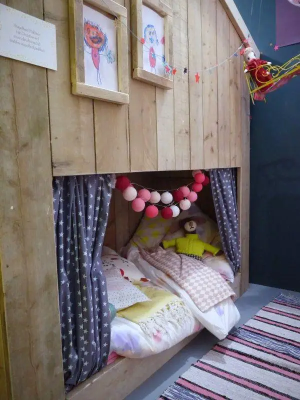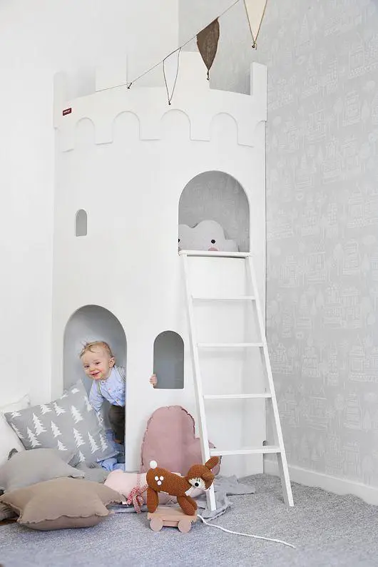 Wenn du Notwendigkeit (ein Bett) mit Spiel verbindest, kannst du ein Bett-Haus für dein Kind bauen, wo es sich sicher fühlt und hineinklettern kann, um als Höhlenforscher, Burgherr oder Spion zu spielen.