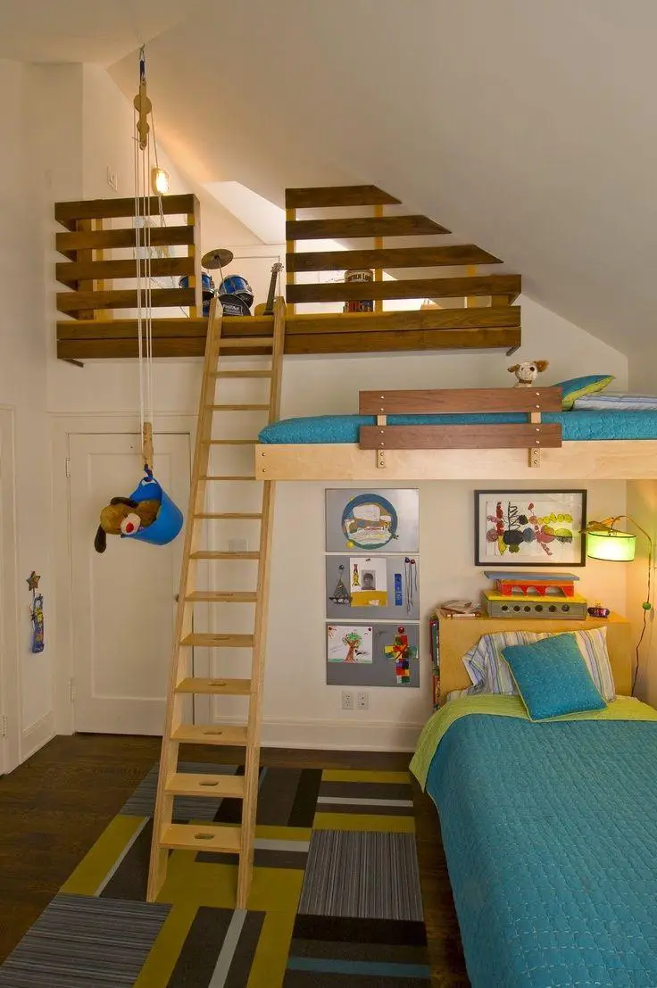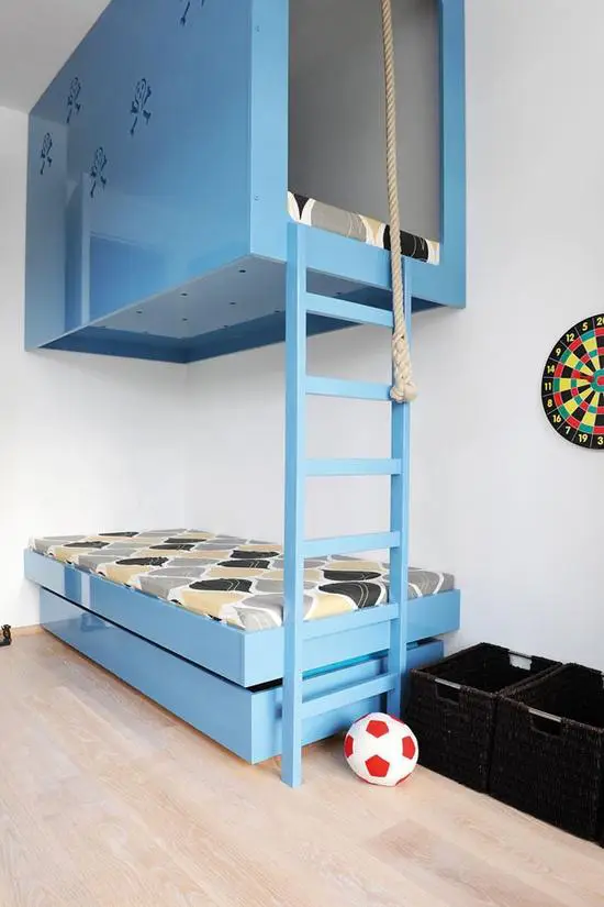Natürlich wird kaum ein Kind eine zweistöckige Liege mit Leiter ablehnen. Außerdem ist sie sehr praktisch, wenn mehrere Kinder leben.