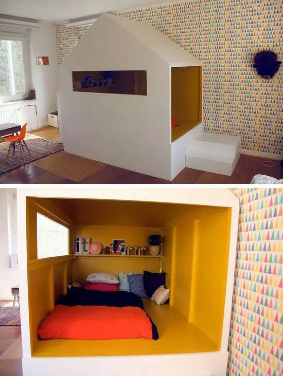 Und Kinder lieben auch, Häuser zu bauen – aus Stühlen, Sofakissen, Sesseln und Kartons. Heute haben wir eine Sammlung von Spielhäusern für Kinderzimmer zusammengestellt, die Eltern zu Hause bauen können – klein oder geräumig.