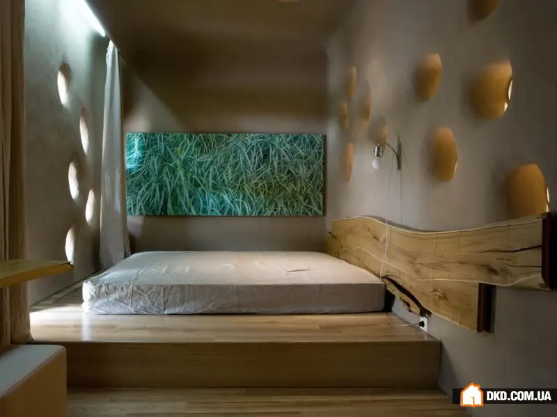 Ein weiterer Trick zur „Erweiterung“ des Raumes, basierend auf dem gleichen Effekt der visuellen Erweiterung, kann man ansehen auf dem Foto dieser kleinen Schlafzimmertür. Hier ist ein eigenartiger negativer Raum der Matratze im Hintergrund des Kopfes und Decke verschiebt die visuelle Wahrnehmung des Raumes einer kleinen Schlafzimmertür und gibt den Augen die Möglichkeit, einen größeren Weg zu gehen. Genau deshalb entsteht das Gefühl von etwas größerem Raum als er wirklich ist.