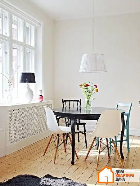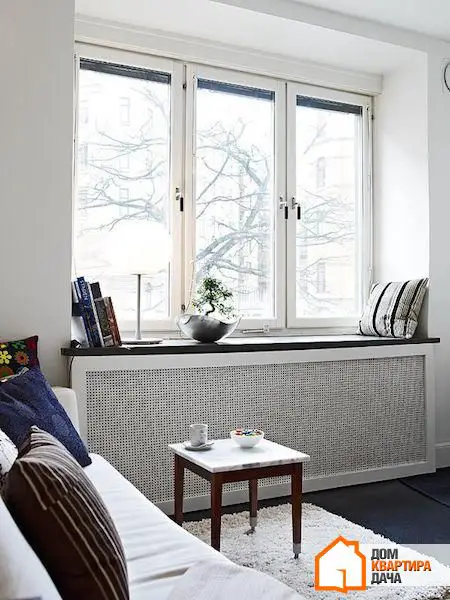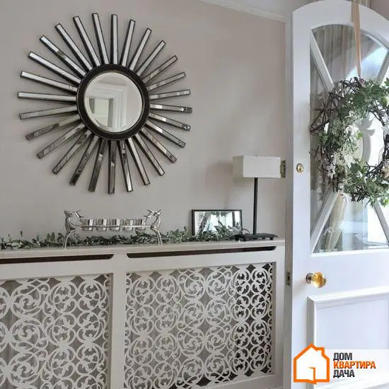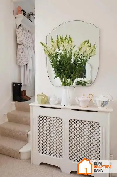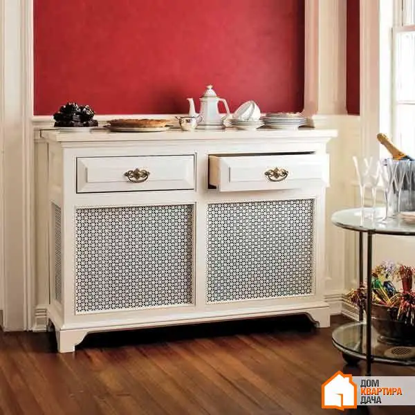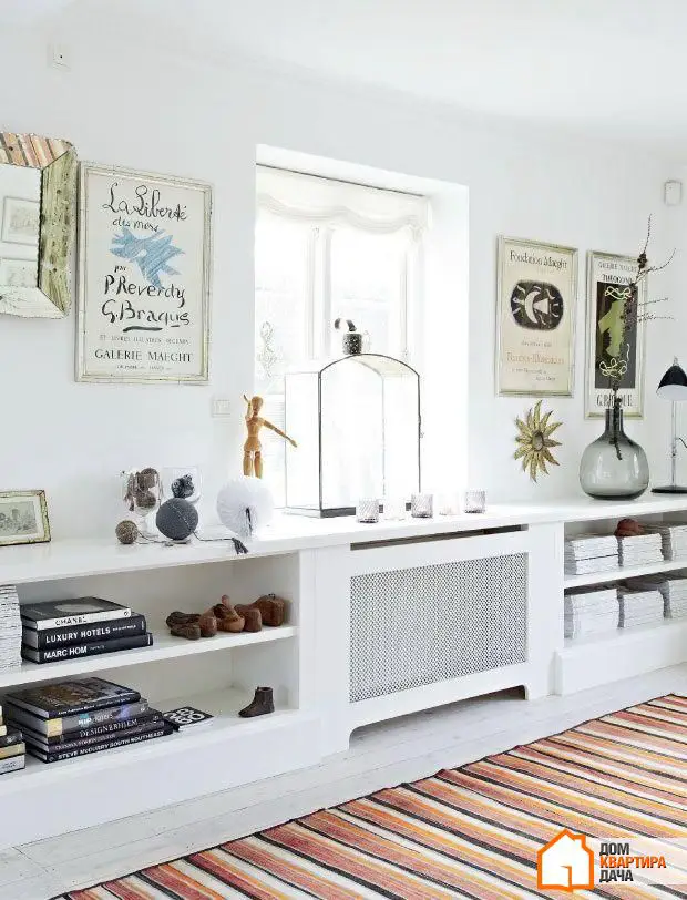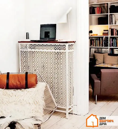 Was wäre, wenn man zulässt, dass die Dekoration wächst? Ein Bildschirm für den Radiator kann ein Möbelstück sein – eine Bücherregal, ein Kommode oder eine Nachttisch. Besonders beliebt bei praktischen Haushalten: Die Radiatoren versteckt und gleichzeitig ein neuer Lagerraum organisiert.