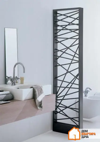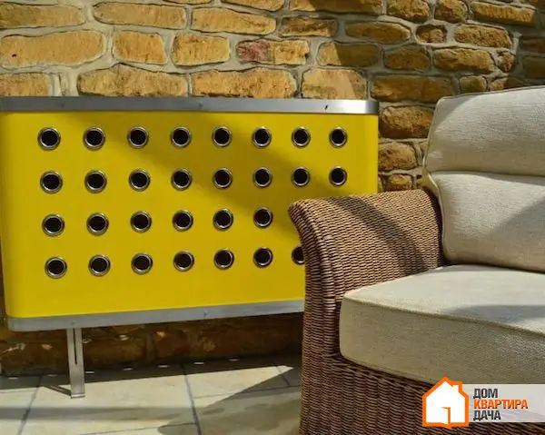 Moderne Bildschirme für Radiatoren werden häufig aus Metall gefertigt und mit geometrischen Mustern verziert. Für Menschen, die einen eleganten Akzent in solcher Konstruktion schaffen möchten, gibt es Modelle mit Textilien oder farbenfrohe Bildschirme.