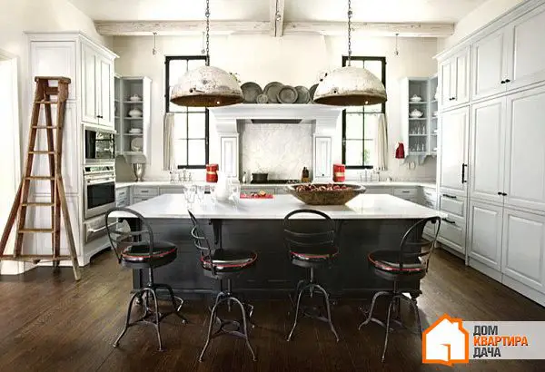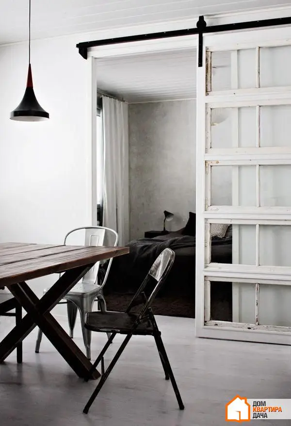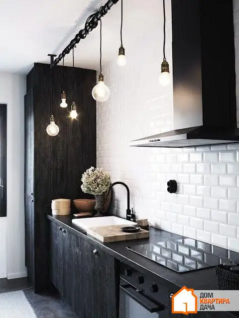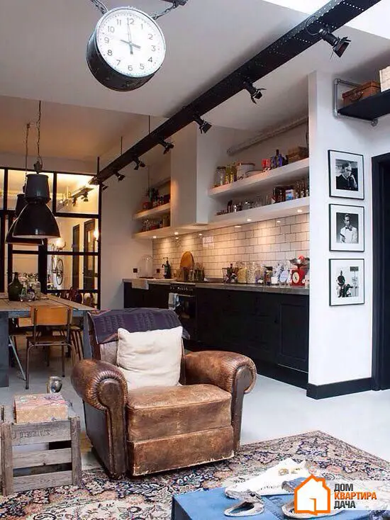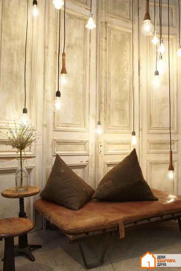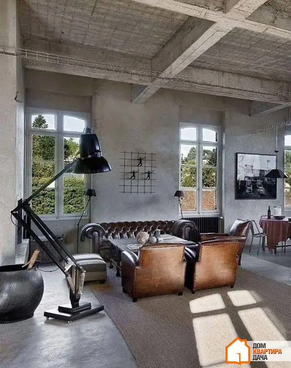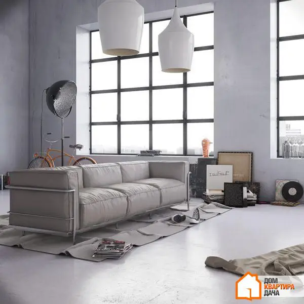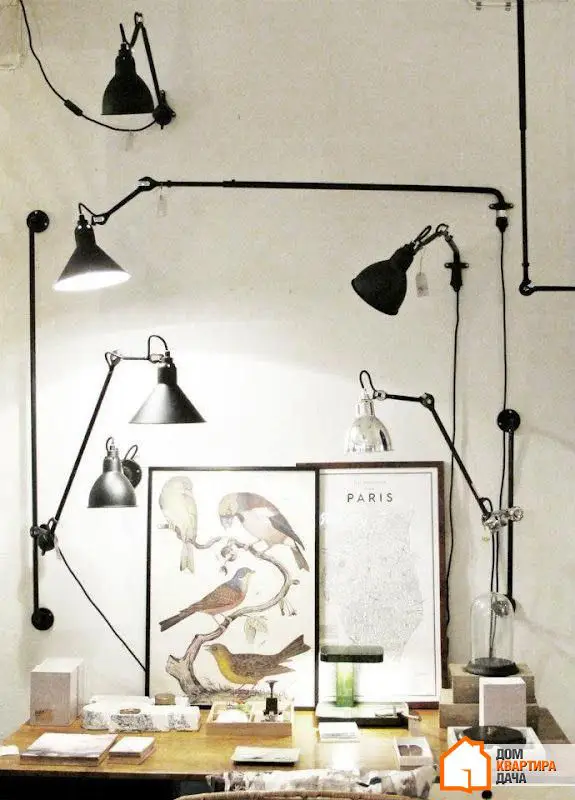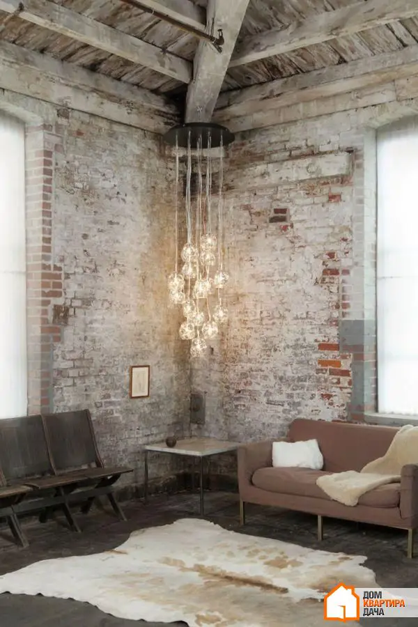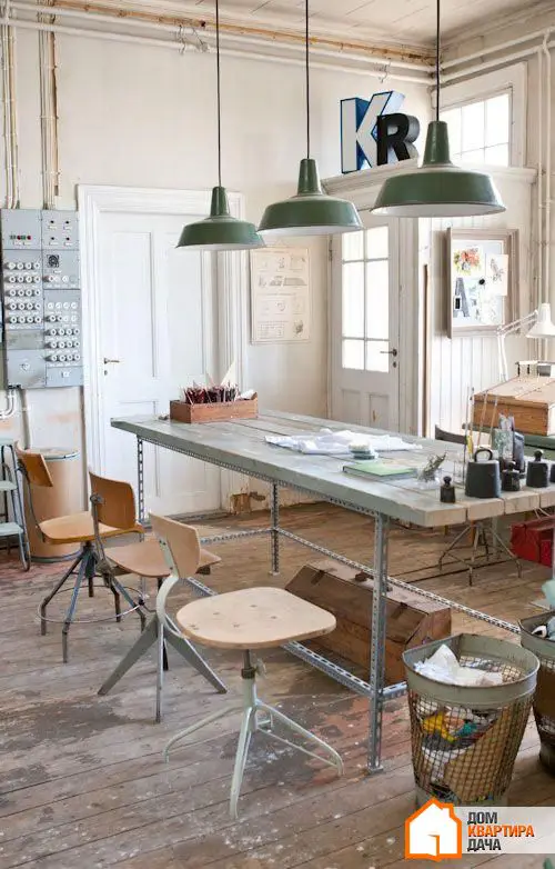 Der Industriestil ist geöffnetes Raum, große Dachfenster und maximale Nutzung natürlicher Beleuchtung. Vorhänge werden entweder gar nicht verwendet oder sind fast lichtlose Materialien in hellen Farben. Kunsthafte Beleuchtung wird durch Leuchter im Fabrikstil mit Metall und dickem Glas realisiert. Für allgemeine Beleuchtung werden Glühbirnen mit metallenen Diffusoren verwendet, die an Fabrikleuchter erinnern, oder ganze Reihen von Glühbirnen ohne Diffusoren, aber mit offener Kabelverlegung. Funktionelle Beleuchtung – flexible Stehlampen mit Gelenken, die technischen Lampen in Werkstätten ähneln.