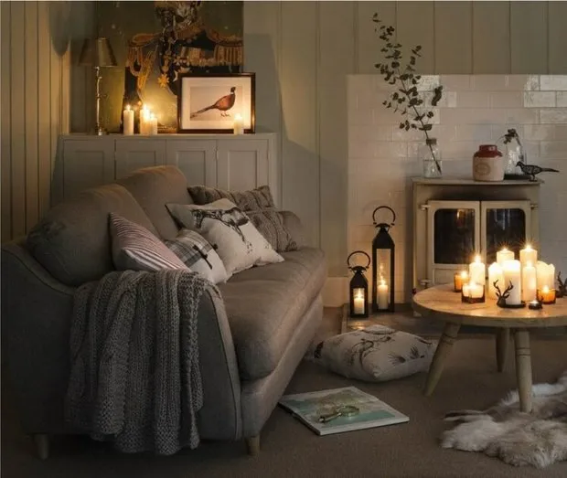 Ein gemütlicher Abend auf der Datscha ist schwer vorzustellen, ohne Kerzen. Für den Außenbereich sind spezielle Gartekerzen mit starkem Docht besser geeignet, die Wind nicht beeinflussen. Mit Haushaltskerzen kann man experimentieren, insbesondere handgemachte – das ist sehr skandinavisch.