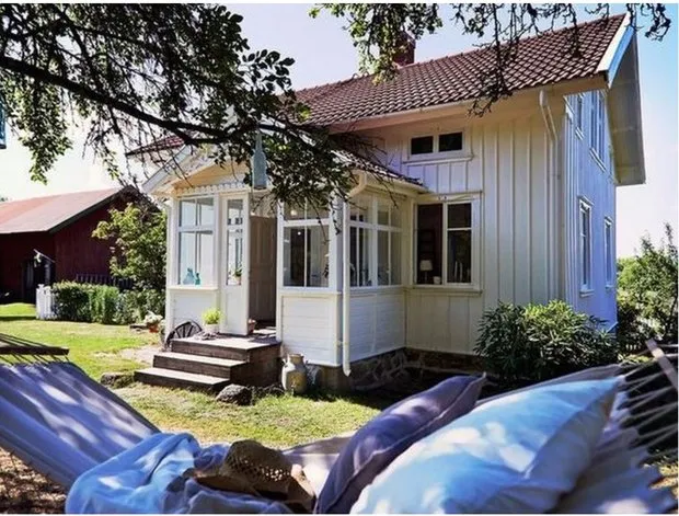 Skandinavier lieben freundliche Gespräche im Freien. Ein Hängekorb ist eine hervorragende Ergänzung für entspannten Urlaub in gemütlicher Gesellschaft. Legen Sie ein paar Kissen und eine Decke hinein, und er wird sofort zu einem begehrten „Gemütlichkeit-Eck“ – ein notwendiger Punkt im skandinavischen Haus.