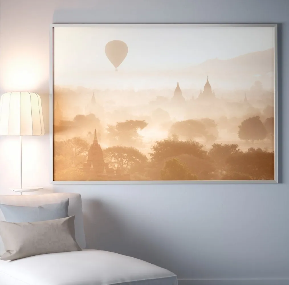 Eine großartige Möglichkeit, Ihr Interieur zu dekorieren und Ihr Budget einzusparen – kaufen Sie ein Bild oder einen Poster mit einem deutlichen Rabatt. Wir mögen besonders „Tempel von Bagan“, aber es gibt auch andere Optionen.