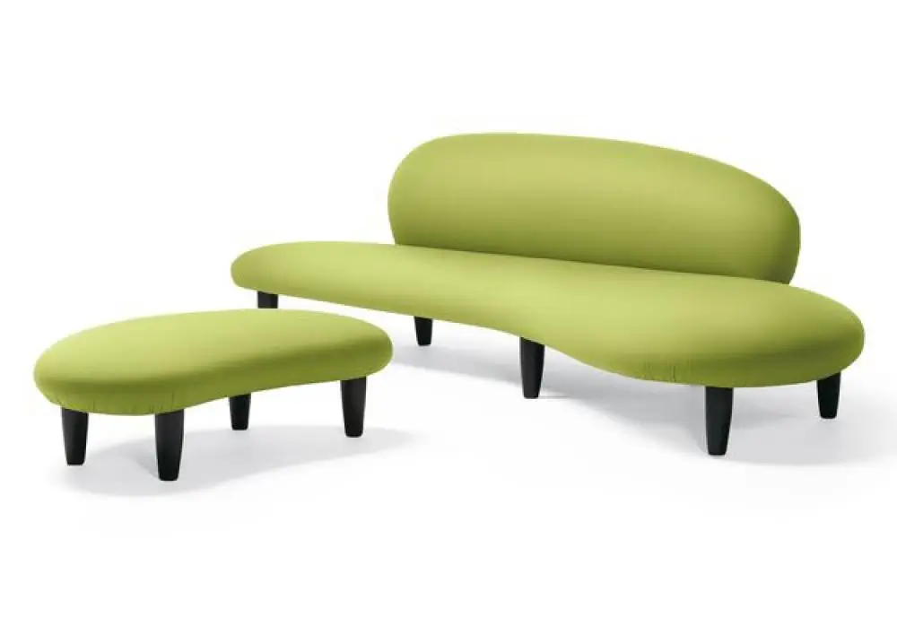 Wie bekannt, war der legendäre Designer Isamu Noguchi, der Möbel schuf, auch in gewissem Maße ein Bildhauer: daher so große Sorgfalt bei der Formwahl. Sein berühmtes Sofa Freeform entstand 1946. Seine Form erinnert an Flusskiesel, und Noguchi selbst bezeichnete diese Form als \"weichen Stein\". Das Freeform Sofa wurde zusammen mit der Otomane von Vitra ab 1950 in kleinen Auflagen produziert. 2002 wurde die Produktion wieder aufgenommen. Heute ist das Sofa in verschiedenen ruhigen Farbtonen erhältlich. Das Original kostet etwas mehr als 7.000 Euro.