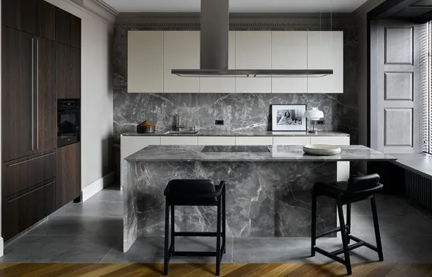 Design: Enjoy HomeWas zu tun ist:Entscheiden Sie sich für das Material der Küchen-Arbeitsfläche. Die Auswahl der Arbeitsfläche wird durch das Budget, das äußere Aussehen und die Nutzungsdauer bestimmt.