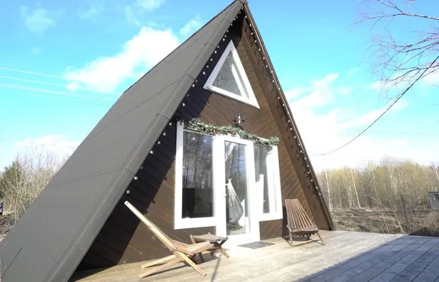 Wie wir ein dreieckiger Mikrohaus für die Mietunterkunft eingerichtet haben. Ein Interior, in das Sie sich verlieben werden!