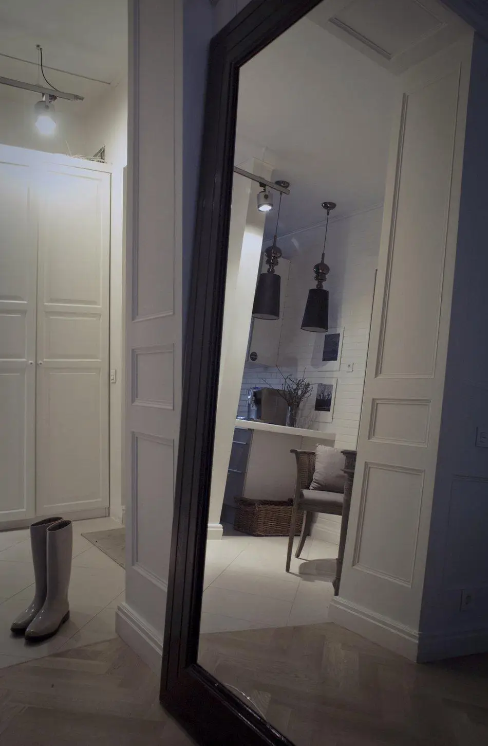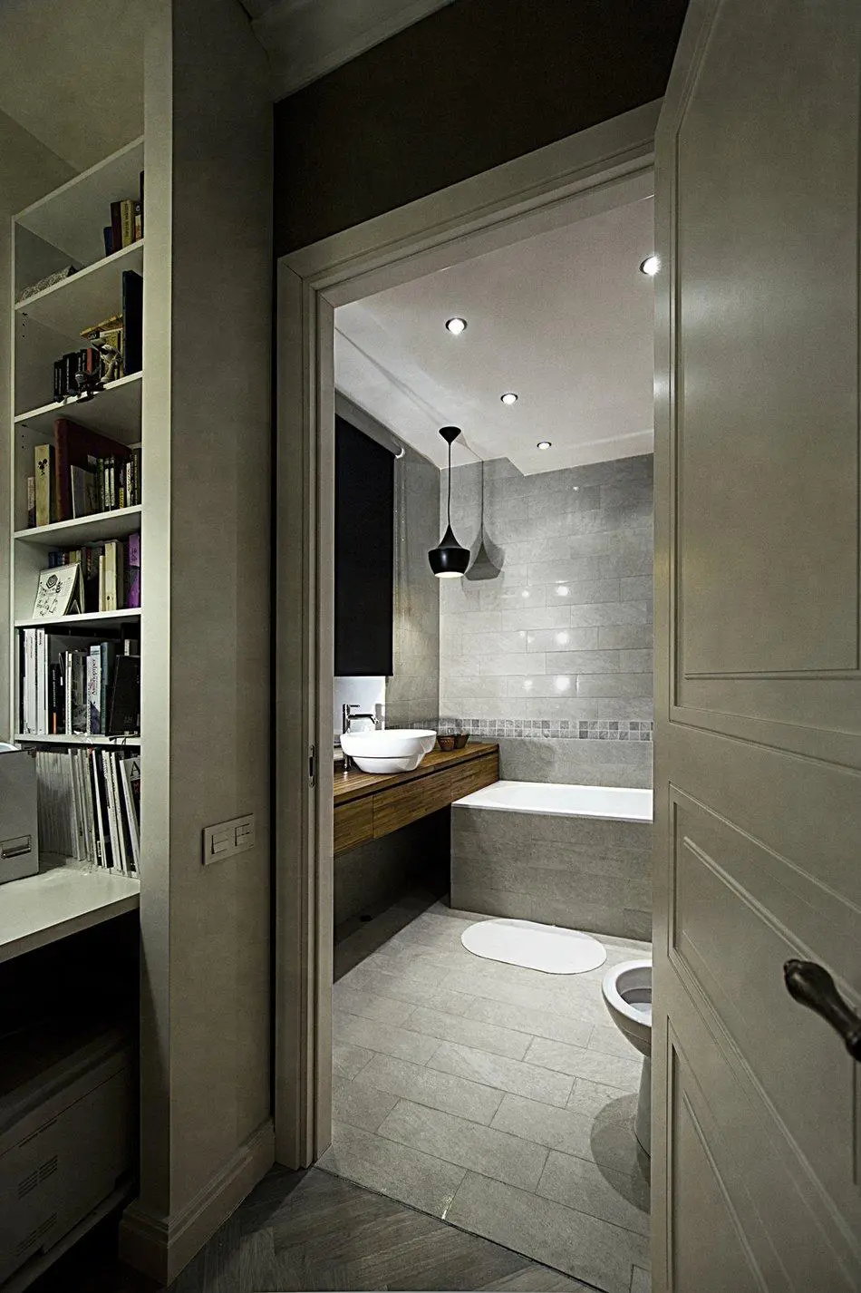 Für die 96 qm große Wohnung mit Korridor-System, kleiner Küche, eingebautem Kaminschacht, nicht funktionsfähigem Abfallschacht und anderen Nachteilen der Stalinschen Architektur erstellte die Designerin 19 Planungsvarianten. Die gewählte Lösung unterscheidet sich stark von klassischen Grundrissen, erfüllt aber beide Eigentümer vollständig.