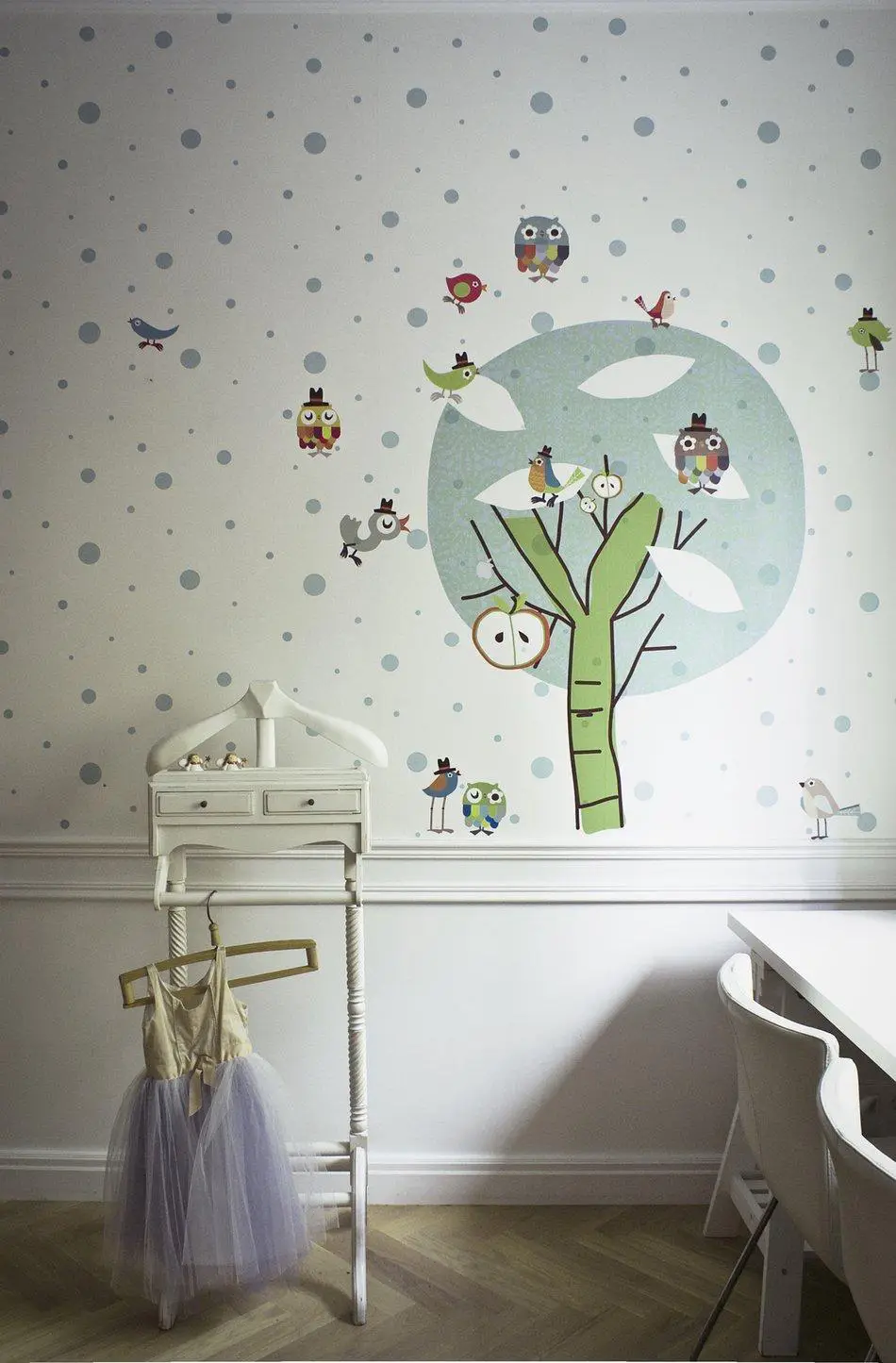 Im Schlafzimmer und Kinderzimmer – Tapeten. Im Kinderzimmer – Wandmalerei und Aufkleber. In der Küche – Verblenderziegel und Keramikfliesen. Im Badezimmer – Fliesen von Sant Agostino.