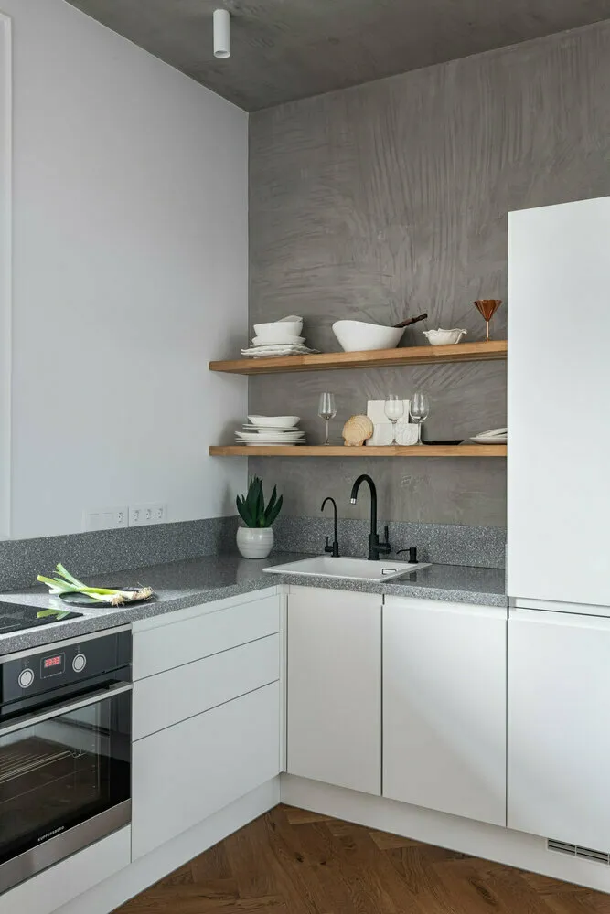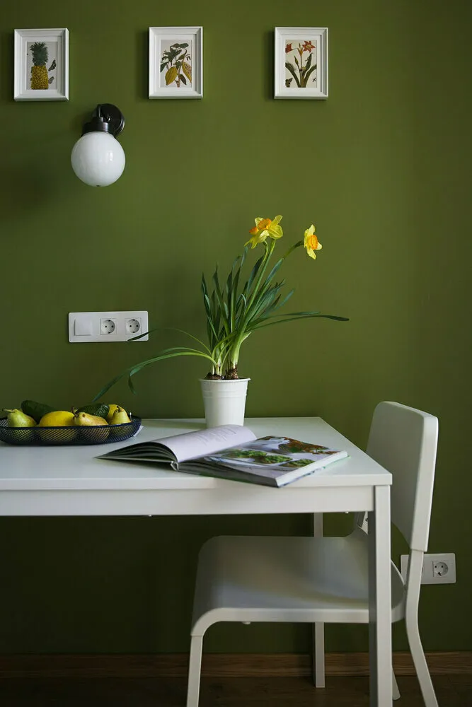 Die Küche ist ein Raum mit erhöhter Feuchtigkeit. Denken Sie daran, wenn Sie Farbe kaufen. Eine weitere wichtige Eigenschaft ist die Dampfdurchlässigkeit (die Fähigkeit der Farbe zu „atmen“): Diese Ausstattung ist vor Schimmel und Pilzen geschützt und hat keine Angst vor Feuchtigkeit.