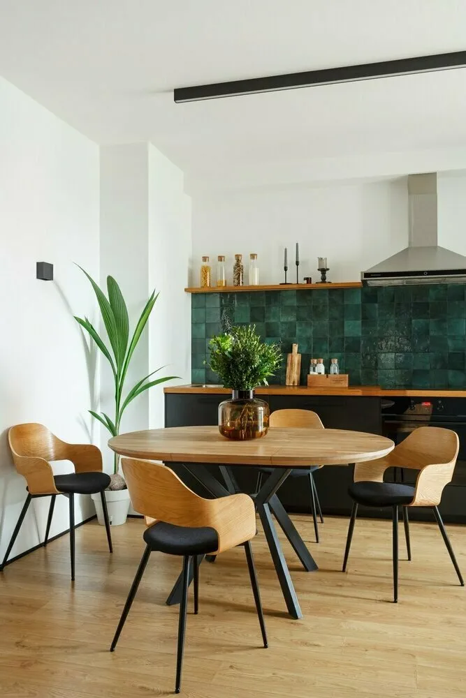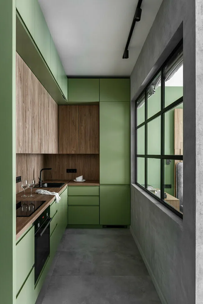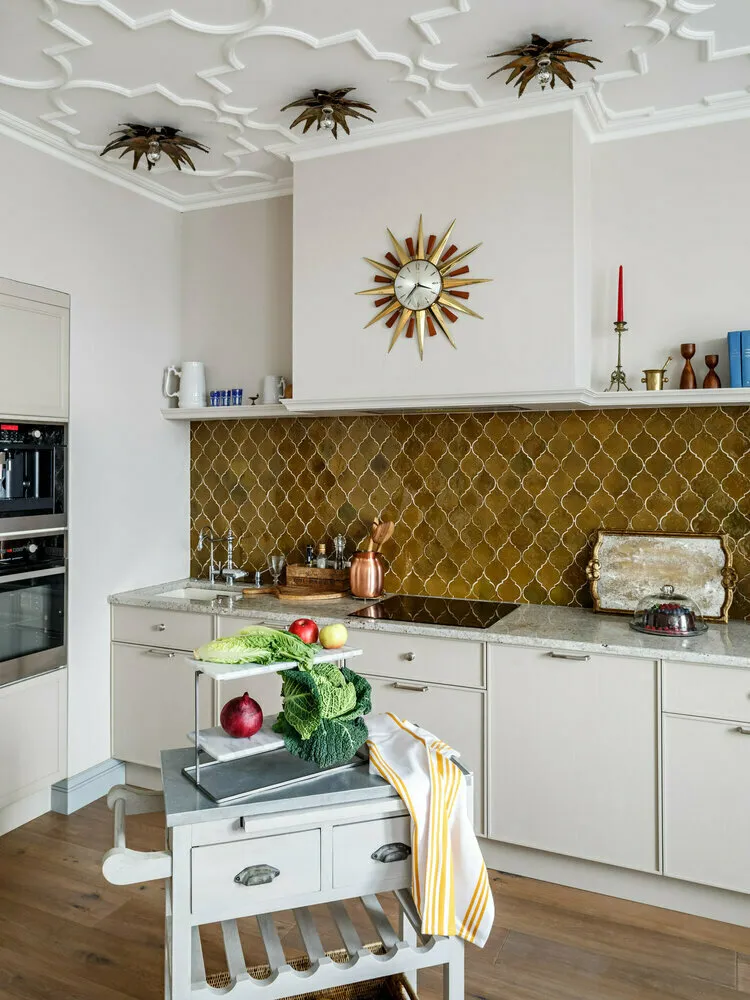 Design: Anastasia ZarquaaZu diesen gehören tiefe orangefarbene Töne. Die Küche liegt im Sonnenlicht? Dann kann sie auch in einer dunklen Palette gestaltet werden – zum Beispiel in Kaffee-, Oliven- oder Terrakotta-Tönen.