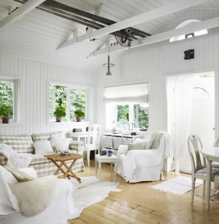 Um Luft und Licht hereinzulassen, bringen Sie Ihre Fenster in Ordnung. Waschen Sie die Scheiben, streichen Sie die Rahmen und ersetzen Sie schwere Vorhänge durch leichte, halbdurchsichtige Vorhänge.