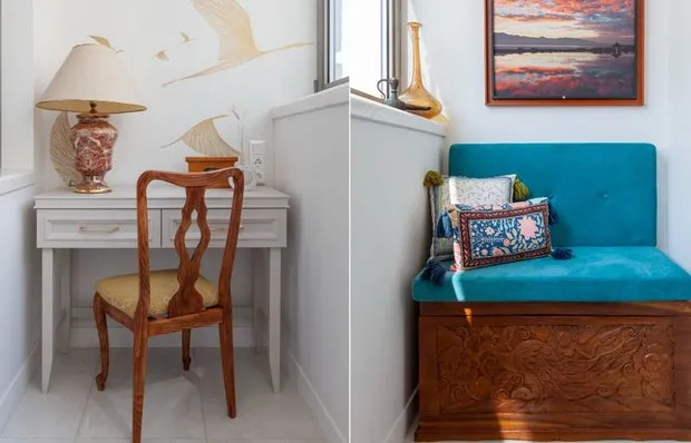 Unsere Heldin ist eine junge Frau, die ihre Balkonfläche in einer kleinen Wohnung (24 m²) gestalten wollte. Um den Lebensraum funktionaler zu machen, entschied sie sich, einen Teil des Balkons für eine eigene kleine Zone zu nutzen. Hier kann man Tee oder Kaffee trinken, mit dem Laptop arbeiten oder einfach entspannen.