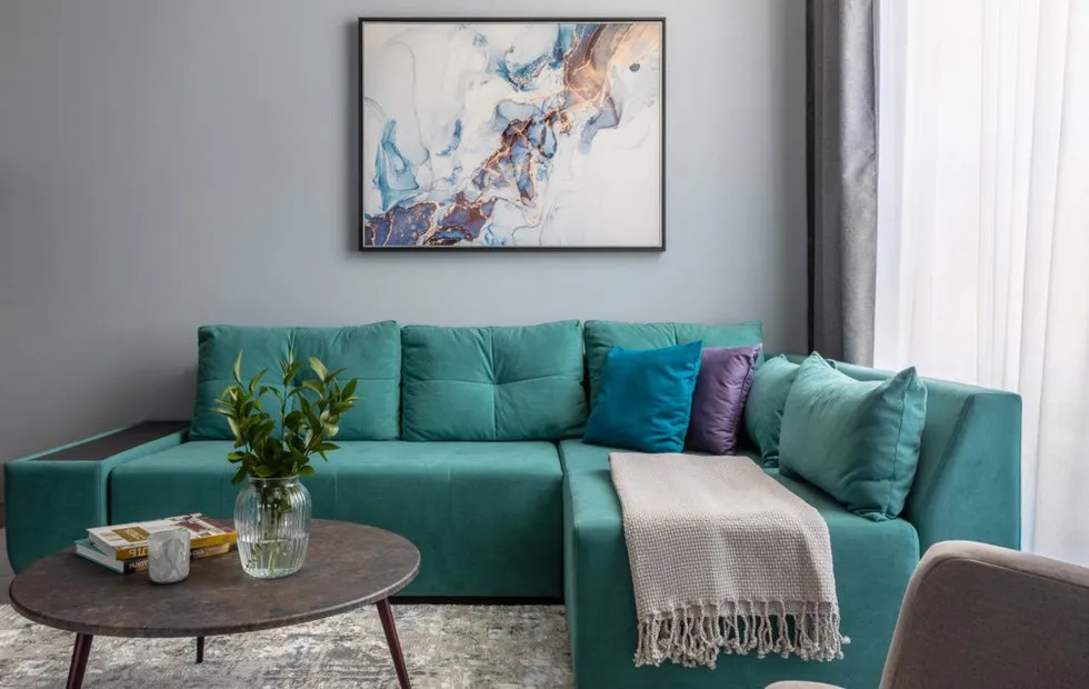 Verwenden Sie helle Töne zur optischen Erweiterung des Raumes. Aber haben Sie keine Scheu, lebendige Akzente hinzuzufügen – sie beleben das Interieur und machen es gemütlicher.