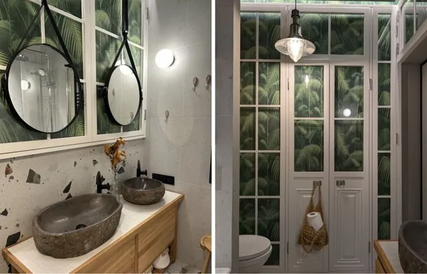 Stylischer Badezimmerbereich von 4 m² mit Atmosphäre einer echten Gewächshaus