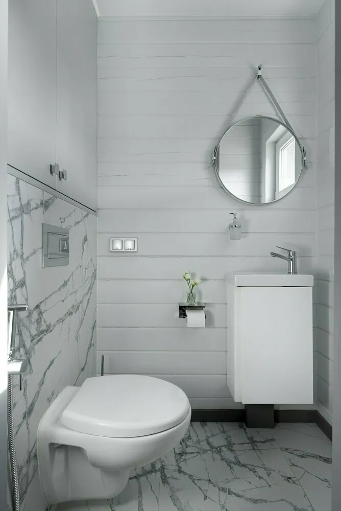 Design: Marina YarmarkinaDie Reinigung dieser Bereiche verbessert nicht nur das Aussehen des Badezimmers, sondern verhindert auch das Auftreten unangenehmer Gerüche.