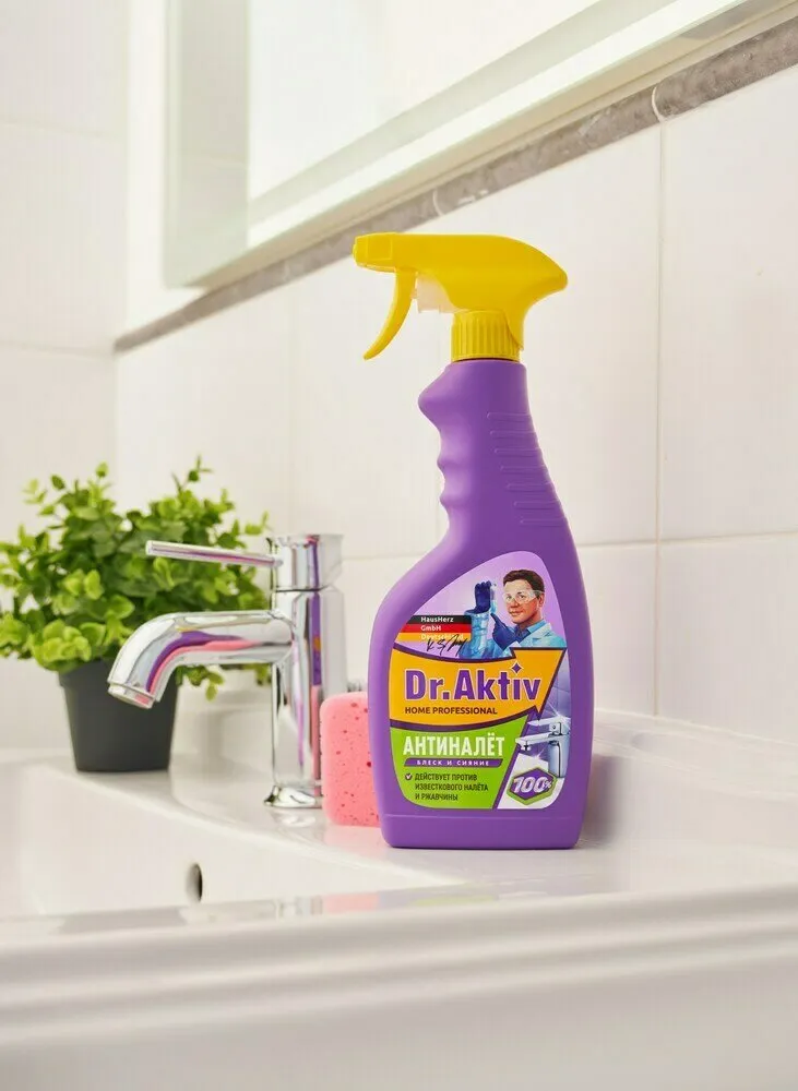 Design: Polina und Alexei KoptevAnti-Scaling Dr.Aktiv enthält Zitronensäure, die sanft und schnell Kalkablagerungen und Seifenreste entfernt und Kacheln sowie Glas wieder zum ursprünglichen Glanz bringt. Das Produkt eignet sich hervorragend für tägliche Reinigung und verleiht Oberflächen einen sauberen, frischen Look.
