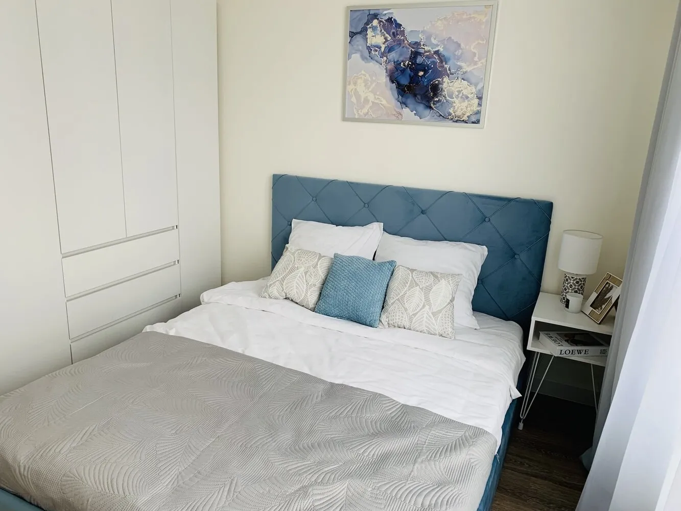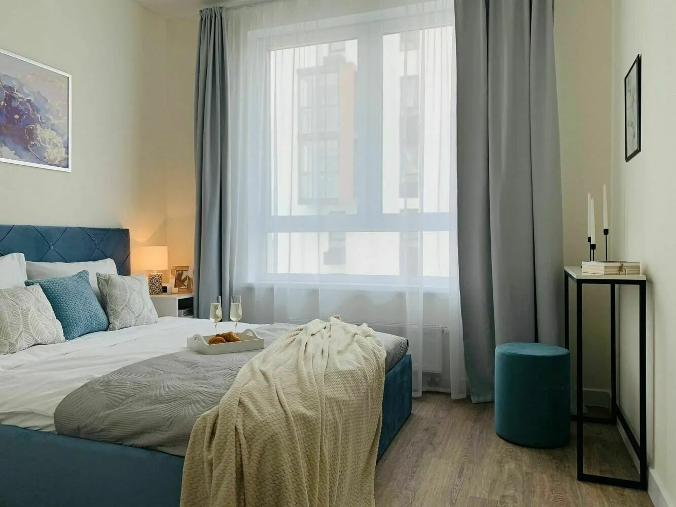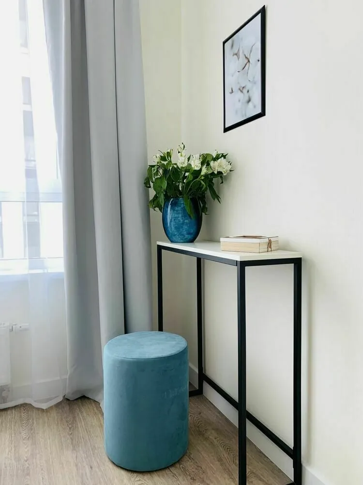 Die fertige Ausstattung durch den Entwickler kann eine ausgezeichnete Basis für eine akzentuierte weiche Möbel und Textilien sein. In der Einrichtung einer kleinen Doppelzimmer, die Julia Grabilina gestaltet hat, ist es genau so geklappt. Die Designerin wurde gebeten, die zwei Zimmer Appartements im Wohnkomplex „Ostafjevo“ des Entwicklers „Flugzeug“ für die Miete vorzubereiten. Julia hat innerhalb von drei Wochen und mit einem minimalen Budget eine gemütliche und komfortable Umgebung eingerichtet, ohne auf einen umfangreichen Renovierungs- oder Umplanungsarbeiten zurückzugreifen.