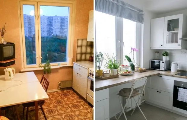 Vor und nach: Umgestaltung einer kleinen Küche in einer Panelwohnung ohne Designer
