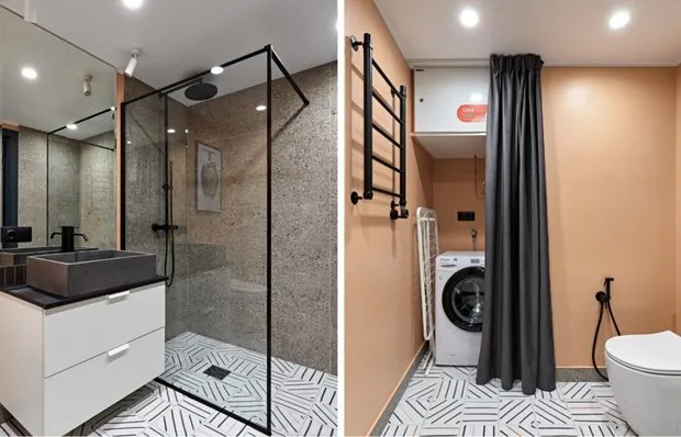 5 ungewöhnliche Ideen aus einem farbenfrohen Badezimmer in einer 2-Zimmer-Wohnung mit 55 m²